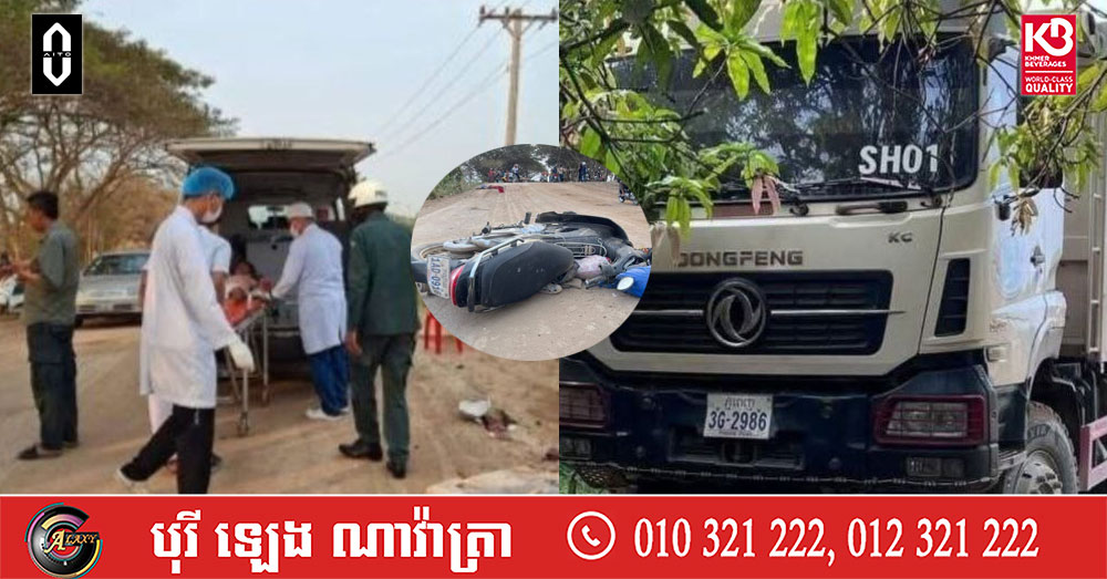 (កណ្តាល)៖ គួរឲ្យសង្វេគណាស់! ឡានដឹកដីខ្នាតធំ បានបើកបុកម៉ូតូមួយគ្រឿងបណ្ដាលស្លាប់២នាក់ប្ដីប្រពន្ធភ្លាមៗតែម្ដង រីឯកូនតូចម្នាក់រងរបួសធ្ងន់ ត្រូវដឹកទៅសង្រ្គោះបន្ទាន់នៅមន្ទីរពេទ្យ កាលពីព្រឹកព្រលឹមថ្ងៃទី២៦ ខែកុម្ភៈ ឆ្នាំ២០២៦ ចំណុចនៅលើផ្លូវបេតុង9NG ស្ថិតក្នុងភូមិព្រែកលួង សង្កាត់ព្រែកលួង ក្រុងអរិយក្សត្រ ខេត្តកណ្តាល។