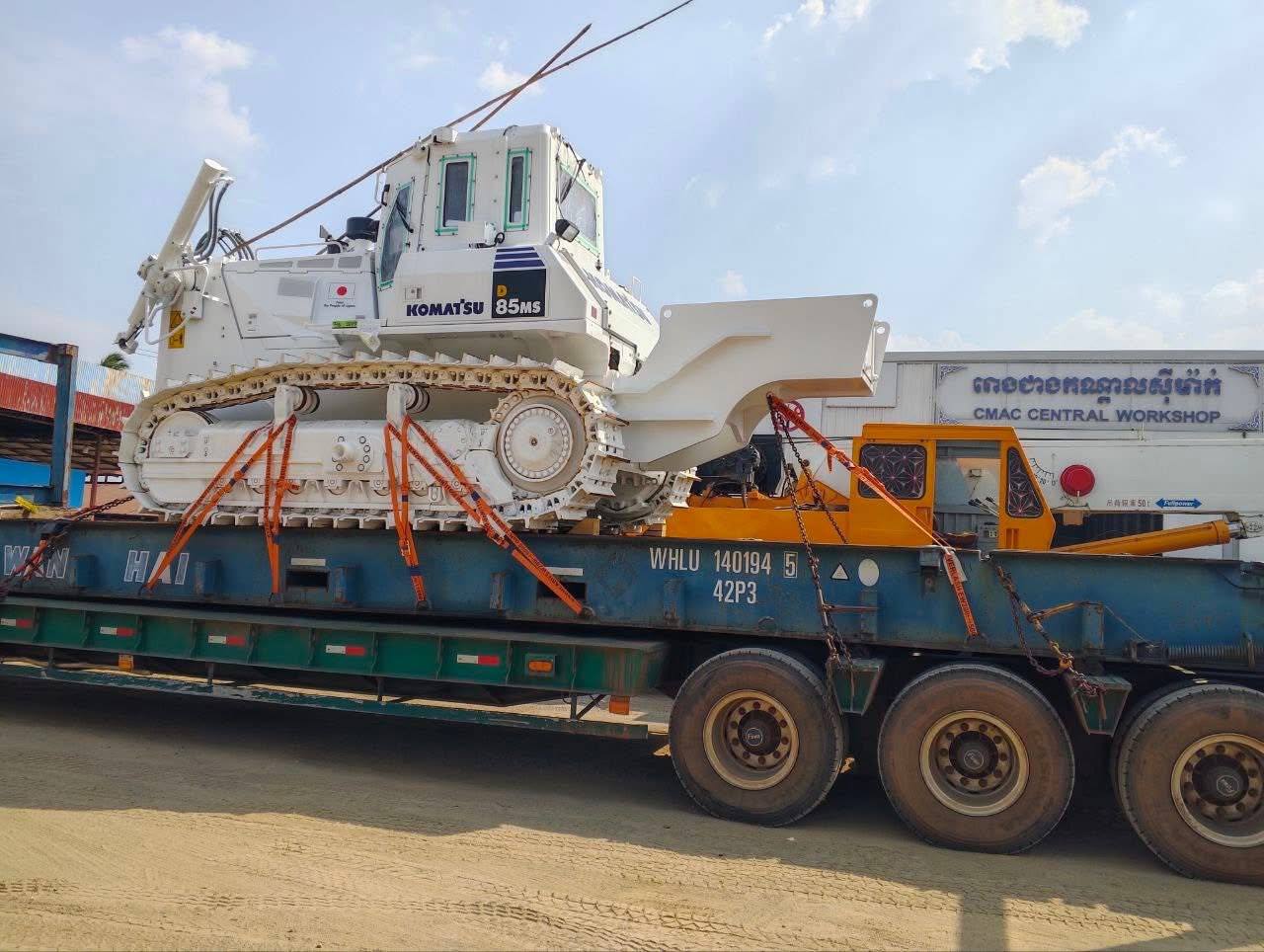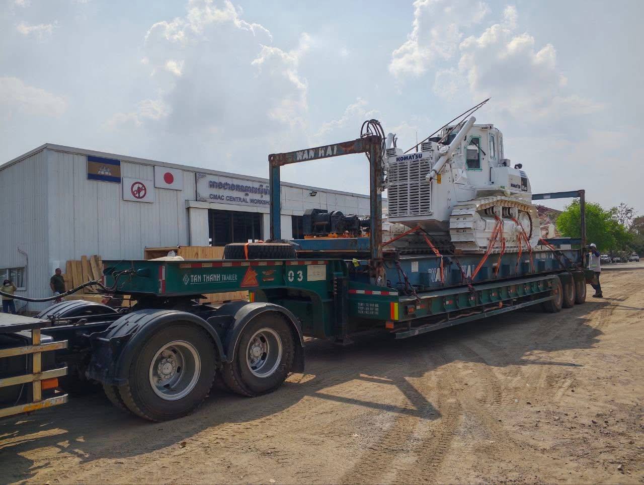 គ្រឿងចក្រកម្ទេចមីនធុនធ្ងន់របស់ជប៉ុន បានដឹកមកដល់កម្ពុជាហើយ ដេីម្បីចូលរួមកម្ទេចសំណល់យុទ្ធភណ្ឌសង្គ្រាមសៀមឈ្លានពាន (Video inside)