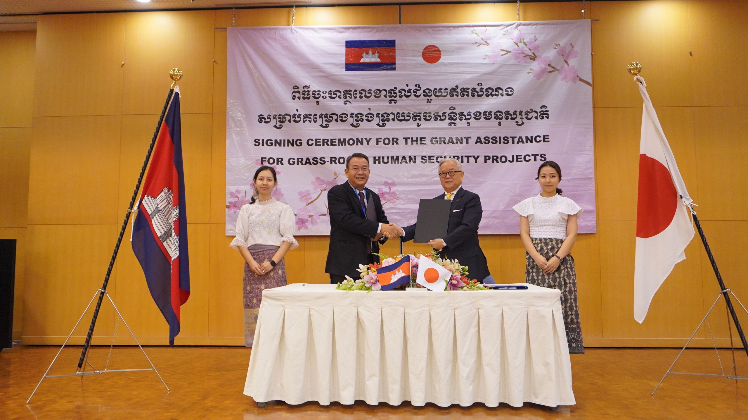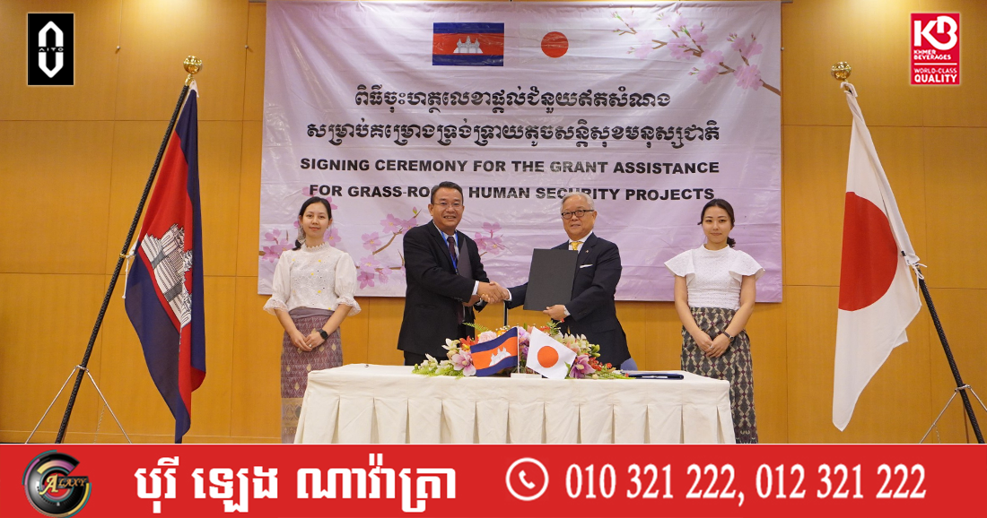 (ភ្នំពេញ)៖ រាជរដ្ឋាភិបាលជប៉ុន តាមរយៈស្ថានទូតប្រចាំកម្ពុជា បានសម្រេចចុះហត្ថលេខាផ្ដល់ចំនួយឥតសំណងនូវថវិកាចំនួន ៣០៧,៧២០ដុល្លារអាមេរិក ដល់ស្ថាប័នទទួលជំនួយចំនួនពីរ ក្រោមគ្រោងការណ៍ជំនួយឥតសំណងសម្រាប់គម្រោងទ្រង់ទ្រាយតូចសន្តិសុខមនុស្សជាតិ (គូសាណូណិ)។