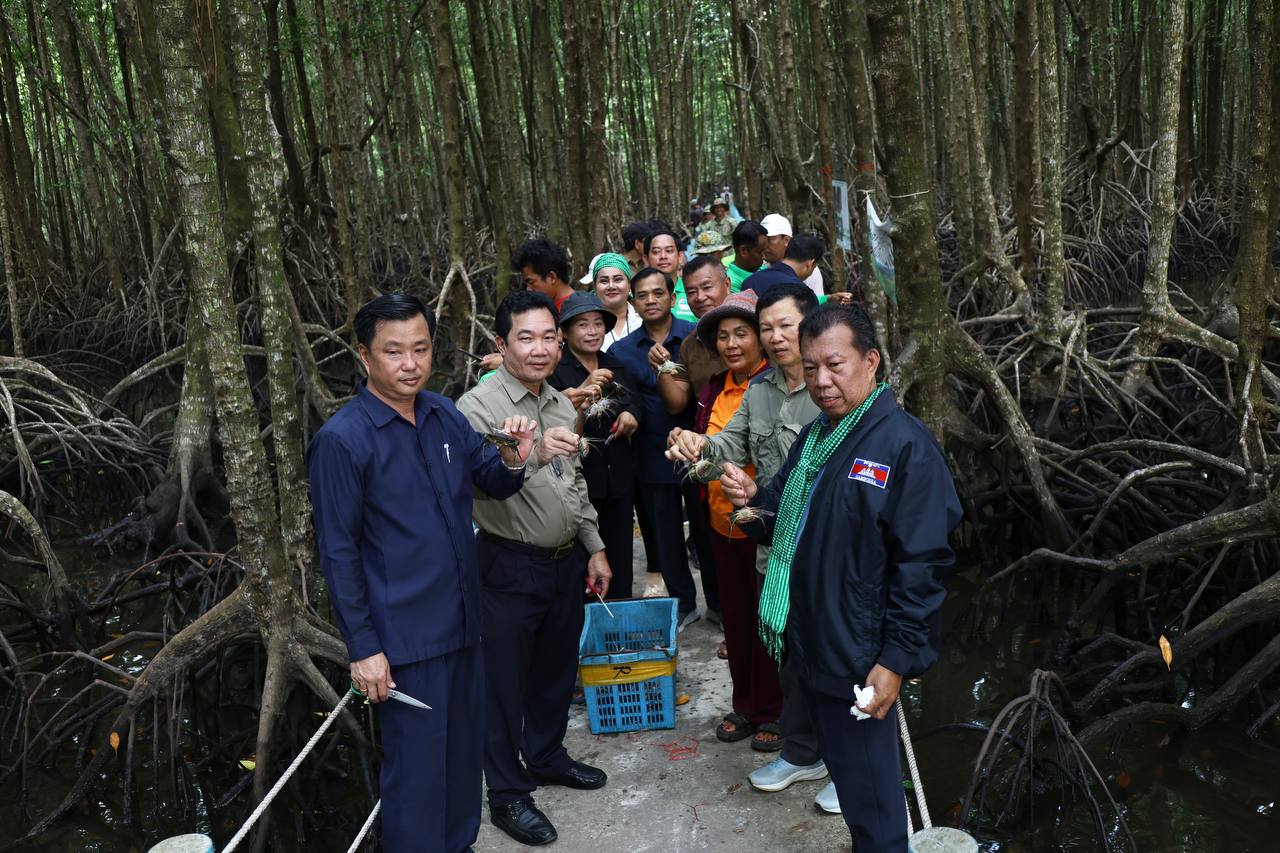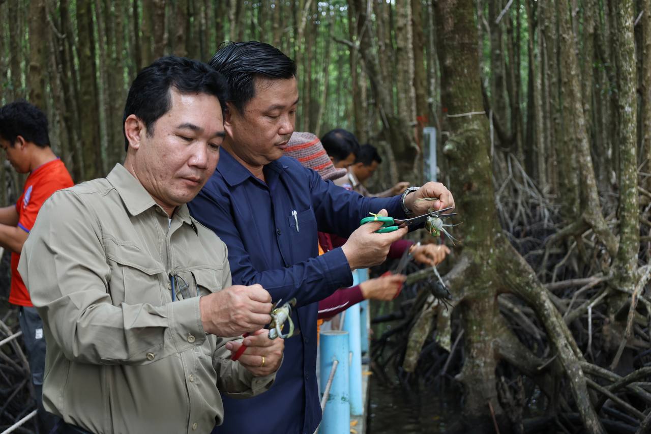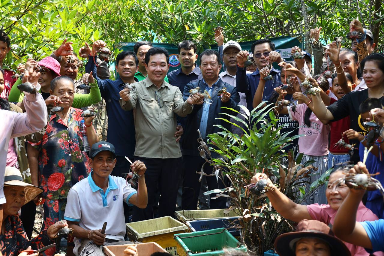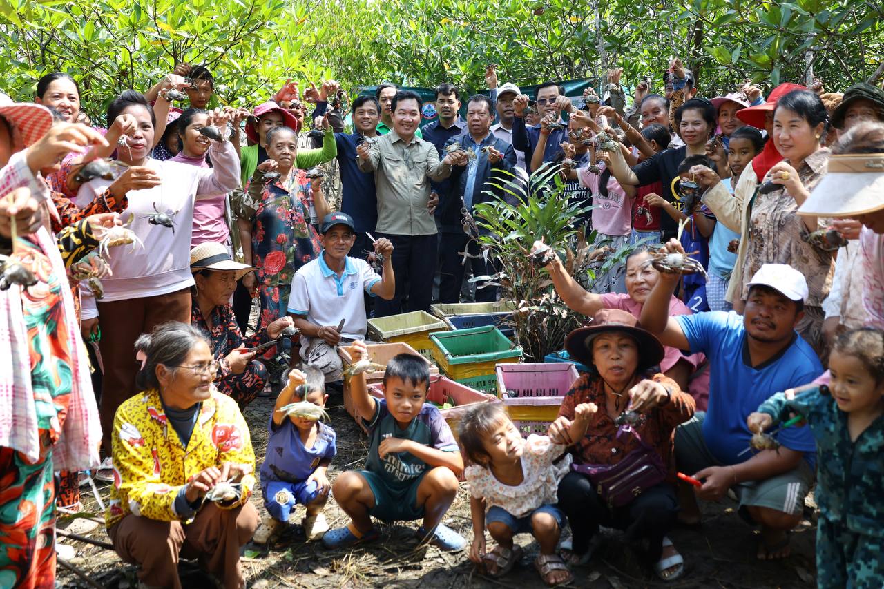 (កោះកុង)៖ ក្រសួងបរិស្ថាន តាមរយៈគម្រោងបន្ស៊ាំ និងភាពធន់នឹងអាកាសធាតុនៃសហគមន៍ពឹងអាស្រ័យលើធនធានជលផលនៅតំបន់ឆ្នេរ នៃប្រទេសកម្ពុជា (CamAdapt) នៅថ្ងៃទី២៦ ខែកុម្ភៈ ឆ្នាំ២០២៦ បានលែងកូនក្តាមថ្ម ៤០០គីឡូក្រាម ស្មើនឹចំនួនកូនក្តាមប្រមាណ ៨០០០ក្បាល ចូលទៅក្នុងធម្មជាតិ ក្នុងសហគមន៍តំបន់ការធម្មជាតិ ពាមក្រសោប និងសហគមន៍តំបន់ការពារធម្មជាតិបឹងកាឆាង ក្នុងស្រុកមណ្ឌលសីមា ខេត្តកោះកុង ដើម្បីស្តារធនធានជលផល ពង្រឹងប្រព័ន្ធអេកូឡូស៊ីតំបន់ឆ្នេរកម្ពុជា និងលើកកម្ពស់ជីវភាពសហគមន៍តំបន់ការពារធម្មជាតិ។