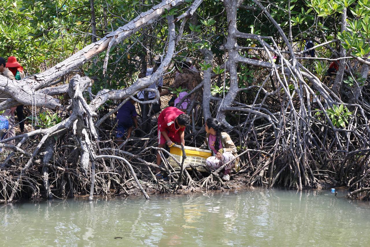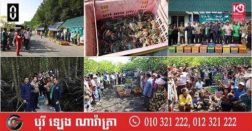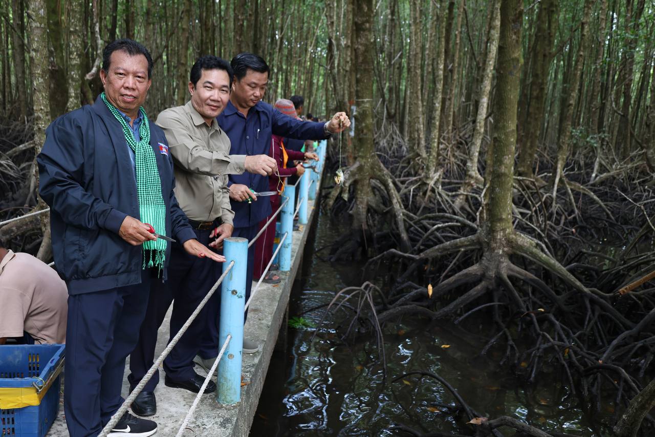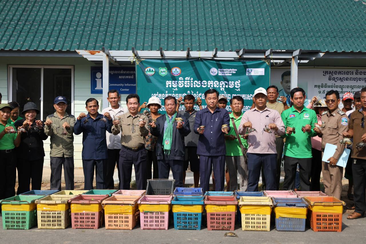 (កោះកុង)៖ ក្រសួងបរិស្ថាន តាមរយៈគម្រោងបន្ស៊ាំ និងភាពធន់នឹងអាកាសធាតុនៃសហគមន៍ពឹងអាស្រ័យលើធនធានជលផលនៅតំបន់ឆ្នេរ នៃប្រទេសកម្ពុជា (CamAdapt) នៅថ្ងៃទី២៦ ខែកុម្ភៈ ឆ្នាំ២០២៦ បានលែងកូនក្តាមថ្ម ៤០០គីឡូក្រាម ស្មើនឹចំនួនកូនក្តាមប្រមាណ ៨០០០ក្បាល ចូលទៅក្នុងធម្មជាតិ ក្នុងសហគមន៍តំបន់ការធម្មជាតិ ពាមក្រសោប និងសហគមន៍តំបន់ការពារធម្មជាតិបឹងកាឆាង ក្នុងស្រុកមណ្ឌលសីមា ខេត្តកោះកុង ដើម្បីស្តារធនធានជលផល ពង្រឹងប្រព័ន្ធអេកូឡូស៊ីតំបន់ឆ្នេរកម្ពុជា និងលើកកម្ពស់ជីវភាពសហគមន៍តំបន់ការពារធម្មជាតិ។