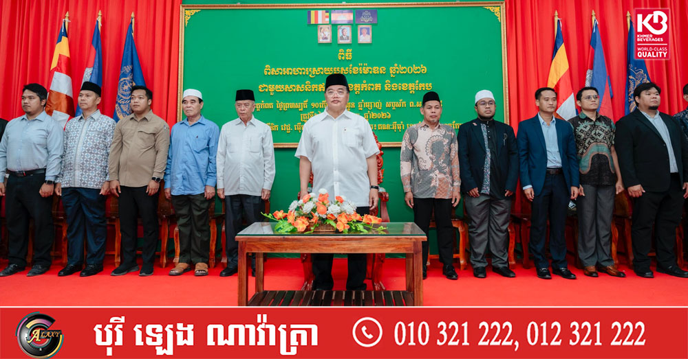 (កំពត)៖ នាល្ងាចថ្ងៃទី២៦ ខែកុម្ភៈ ឆ្នាំ២០២៦ លោកបណ្ឌិត អូស្មាន ហាស្សាន់ ទេសរដ្ឋមន្ត្រីទទួលបន្ទុកបេសកកម្មពិសេស បានអញ្ជើញជាអធិបតីក្នុងកម្មវិធីពិសារអាហារស្រាយបួសខែរ៉ម៉ាឌន ជាមួយសាសនិកឥស្លាមក្នុងខេត្តកំពត និងខេត្តកែប ដែលរៀបចំដោយ គ្លីនិក ម៉ើត ឌុលសេត សហការជាមួយគណៈអ៉ីម៉ំាខេត្តកំពត និងខេត្តកែប។ កម្មវិធីនេះ ធ្វើឡើងនៅខេត្តកំពត ដោយមានការអញ្ជើញចូលរួមពីសំណាក់ថ្នាក់ដឹកនាំឥស្លាម មកពីរាជធានីភ្នំពេញ ខេត្តកំពត និងខេត្តកែប ក្នុងនោះមានថ្នាក់ដឹកនាំខេត្ត ប្រធានអង្គការ សមាគម គ្រូបង្រៀនខ្មែរឥស្លាម ហាកឹម ព្រមទាំងភ្ញៀវអន្តរជាតិសរុប៣០០នាក់។