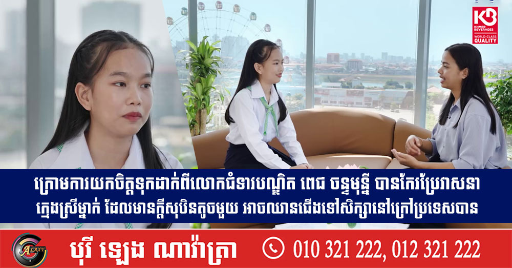 ក្រោមការយកចិត្តទុកដាក់ពីលោកជំទាវបណ្ឌិត ពេជ ចន្ទមុនី្ន បានកែរប្រែវាសនាក្មេងស្រីម្នាក់ ដែលមានក្តីសុបិនតូចមួយ អាចឈានជើងទៅសិក្សានៅក្រៅប្រទេសបាន (Video inside)