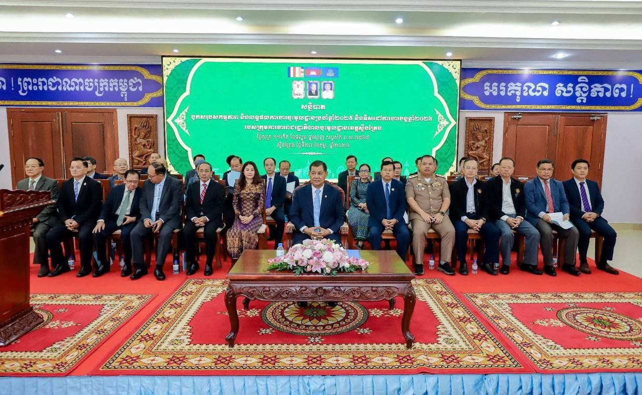 (ស្ទឹងត្រែង)៖ នៅថ្ងៃទី២៧ ខែកុម្ភៈ ឆ្នាំ២០២៦នេះ ក្រុមការងាររាជរដ្ឋាភិបាលចុះមូលដ្ឋានខេត្តស្ទឹងត្រែង បានរៀបចំពិធីសន្និបាតបូកសរុបសកម្មភាពការងារ និងលទ្ធផលការងារចុះមូលដ្ឋានប្រចាំឆ្នាំ២០២៥ ព្រមទាំងលើកទិសដៅការងារបន្តសម្រាប់ឆ្នាំ២០២៦ ក្រោមអធិបតីភាពលោក ផៃ ប៊ុនឈឿន រដ្ឋមន្រ្តីប្រតិភូអមនាយករដ្ឋមន្រ្តី និងជាប្រធានក្រុមការងាររាជរដ្ឋាភិបាលចុះមូលដ្ឋានខេត្តស្ទឹងត្រែង។