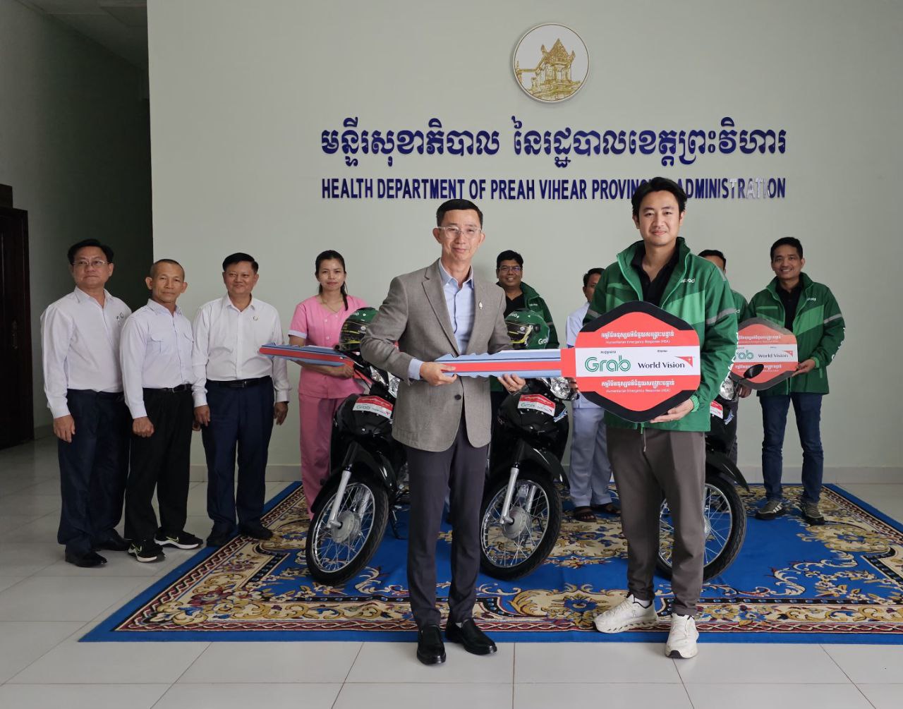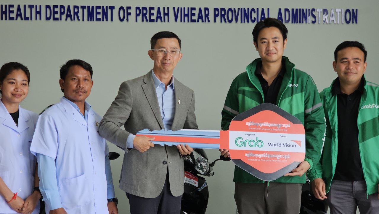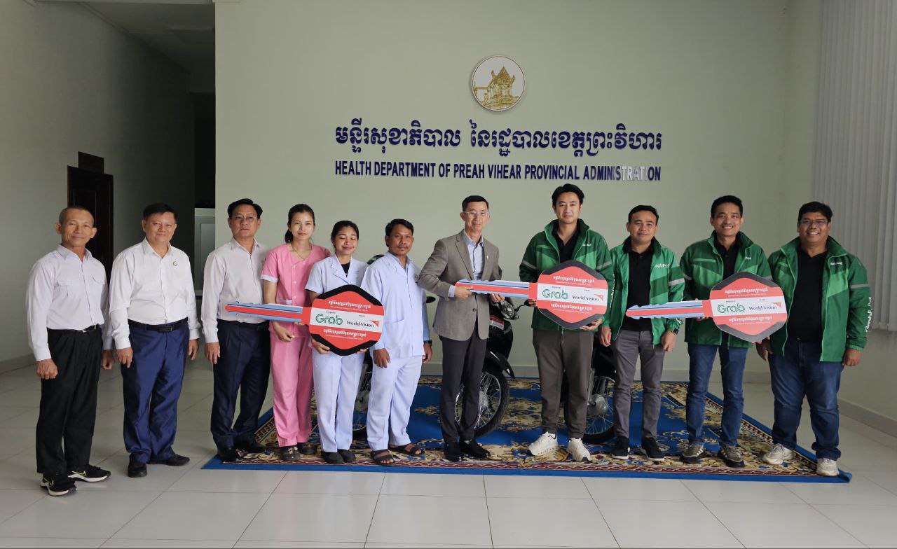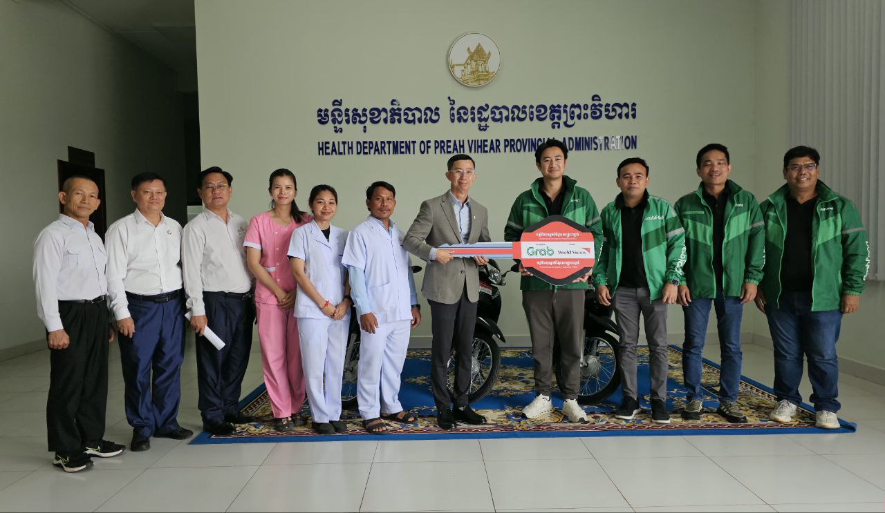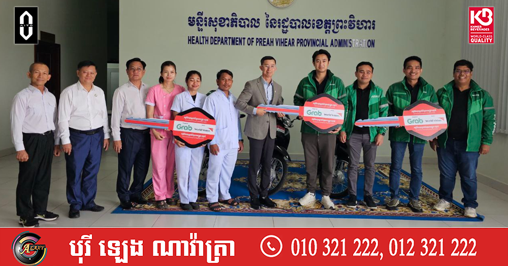 (ព្រះវិហារ)៖ ម៉ូតូចំនួន៣គ្រឿង ជាអំណោយរបស់ក្រុមហ៊ុន Grab តាមរយៈអង្គការទស្សនៈពិភពលោក ត្រូវបានប្រគល់ជូនមន្ទីរសុខាភិបាលខេត្តព្រះវិហារ នាថ្ងៃទី២៧ ខែកុម្ភៈ ឆ្នាំ២០២៦ ក្រោមវត្តមានរបស់លោកវេជ្ជបណ្ឌិត គួង ឡូ ទីប្រឹក្សាក្រសួងសុខាភិបាល និងជាប្រធានមន្ទីរសុខាភិបាលខេត្តព្រះវិហារ ព្រមទាំងមន្ត្រីពាក់ព័ន្ធជាច្រើនរូប។