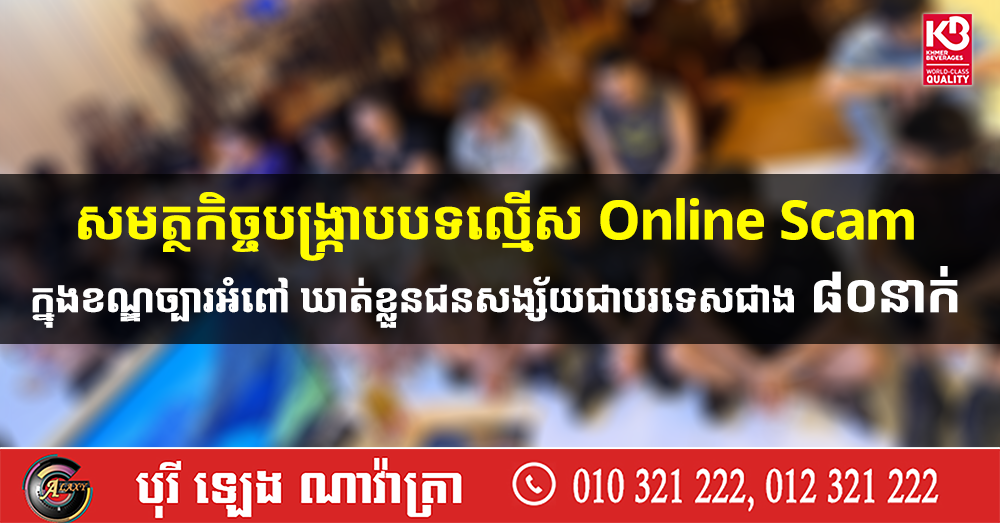 សមត្ថកិច្ចបង្ក្រាបបទល្មើស Online Scam ក្នុងខណ្ឌច្បារអំពៅ ឃាត់ខ្លួនជនសង្ស័យជាបរទេសជាង ៨០នាក់