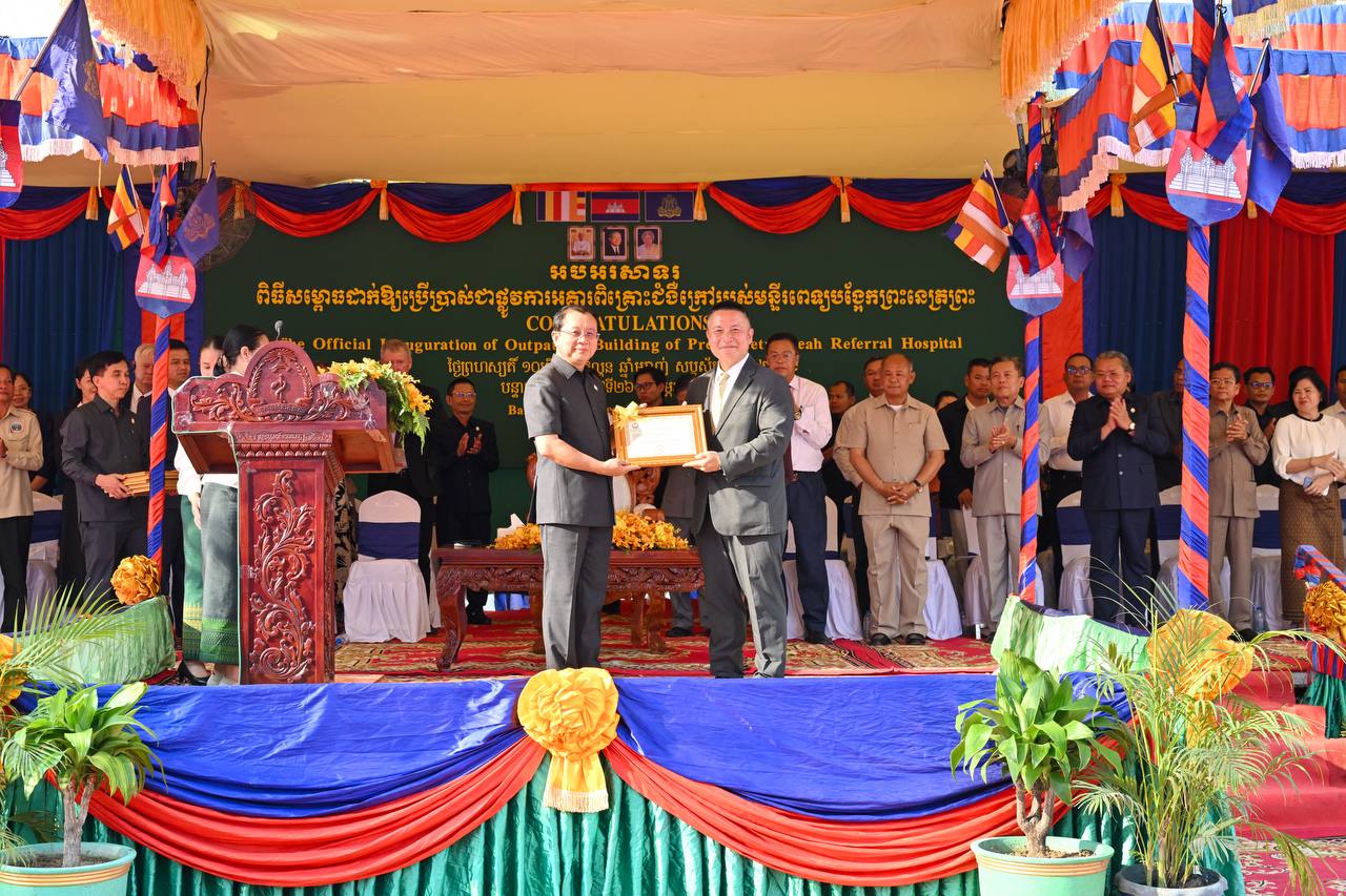 សូមជម្រាបថាក្នុងឱកាសនោះដែរ លោកសាស្រ្តាចារ្យរដ្ឋមន្រ្តី បានផ្តល់ប័ណ្ណសរសើរដល់សមាគមសាសនាចក្រនៃព្រះយេស៊ូគ្រីស្គនៃពួកបរិសុទ្ធថ្ងៃចុងក្រោយ និងប័ណ្ណសរសើរដល់ថ្នាក់ដឹកនាំ មន្រ្តីរាជការ និងបុគ្គលិកសុខាភិបាល នៃមន្ទីរសុខាភិបាលនៃរដ្ឋបាលជាប់ព្រំដែនកម្ពុជា-ថៃ ទាំង៧ខេត្ត និងខេត្តសៀមរាប ដែលបានលះបង់ខ្ពស់ ក្នុងការជួយសង្រ្គោះព្យាបាល និងថែទាំសុខភាពជូនវីរកងទ័ព និងប្រជាជនភៀសសឹក ព្រមទាំងបានយកចិត្តទុកដាក់ខ្ពស់លើការរក្សាអនាម័យ ការទប់ស្កាត់ និងការឆ្លើយតបតប ចំពោះជំងឺ និងជំងឺមិនឆ្លងនានា ក្នុងគោលដៅសង្រ្គោះជីវិត និងលើកកម្ពស់សុខុមាលភាពជូនវីរកងទ័ព និងប្រជាពលរដ្ឋ ដែលរងផលប៉ះពាល់ពីបញ្ហាសន្តិសុខនៅតាមបណ្តោយព្រំដែនកម្ពុជា-ថៃ៕
