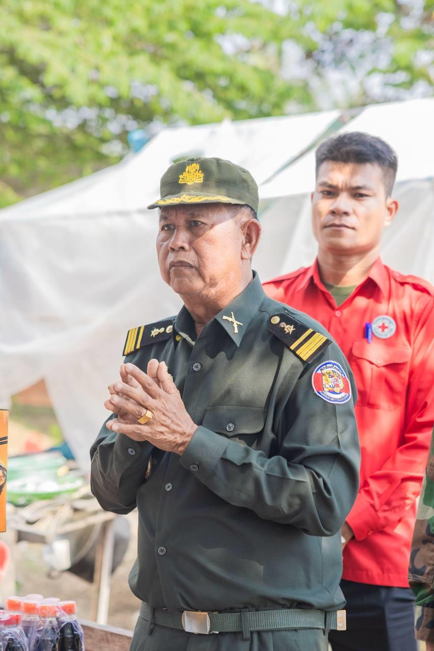 ជាមួយគ្នានេះដែរ លោកវរសេនីយ៍ឯក ភូ ឌីសាឌីន បានបន្តចុះសួរសុខទុក្ខវីរកងទ័ពលោកពលបាលឯក ម៉ម ធឿន ភេទប្រុស អង្គភាព កងពលតូចអន្តរាគមន៍លេខ១ វីរកងទ័ពឈរជើងសមរភូមិជួរមុខទិសតាថាវ ខេត្តព្រះវិហារ។