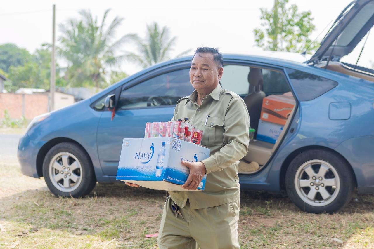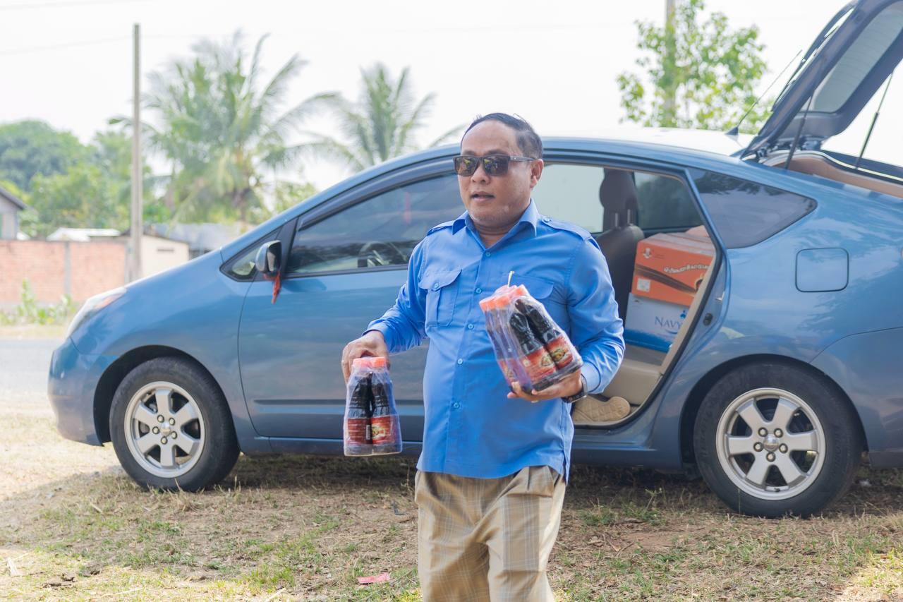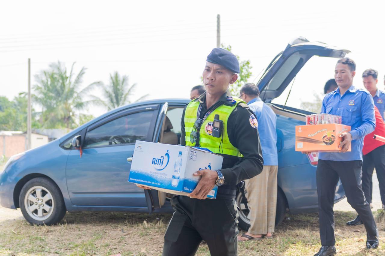 ក្រៅពីសួរសុខទុក្ខ លោកវរសេនីយ៍ឯក ភូឌី សាឌីន ក៏បាននាំយកនូវថវិកា ព្រមទាំងគ្រឿងឧបភោគ-បរិភោគមួយចំនួនជូនដល់គាត់និងគ្រួសារផងដែរ ក្នុងនោះរួមមាន៖ ថវិកា ២០០,០០០រៀល អង្ករ, ៣បាវ, មី ៣កេស, ទឹកសុទ្ធ ៣កេស, ទឹកត្រី ៣យួរ, ទឹកស៉ីអ៉ីវ ៣យួរ និងត្រីខ ៣យួរ។