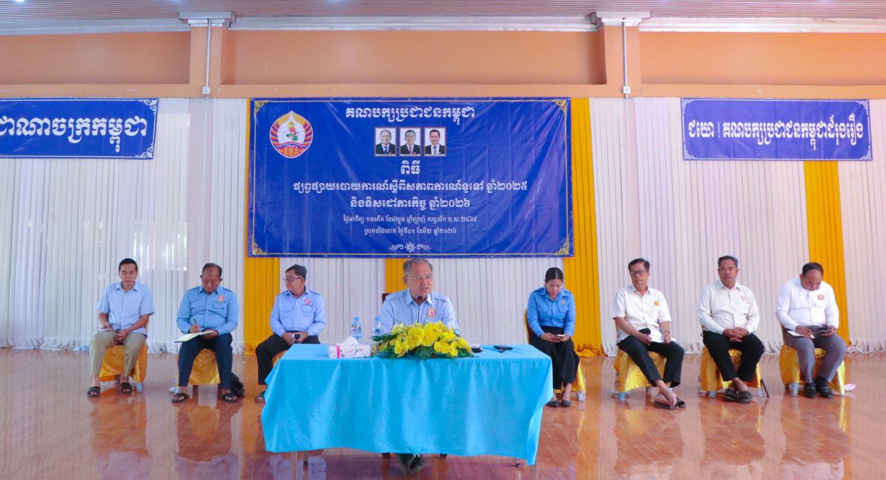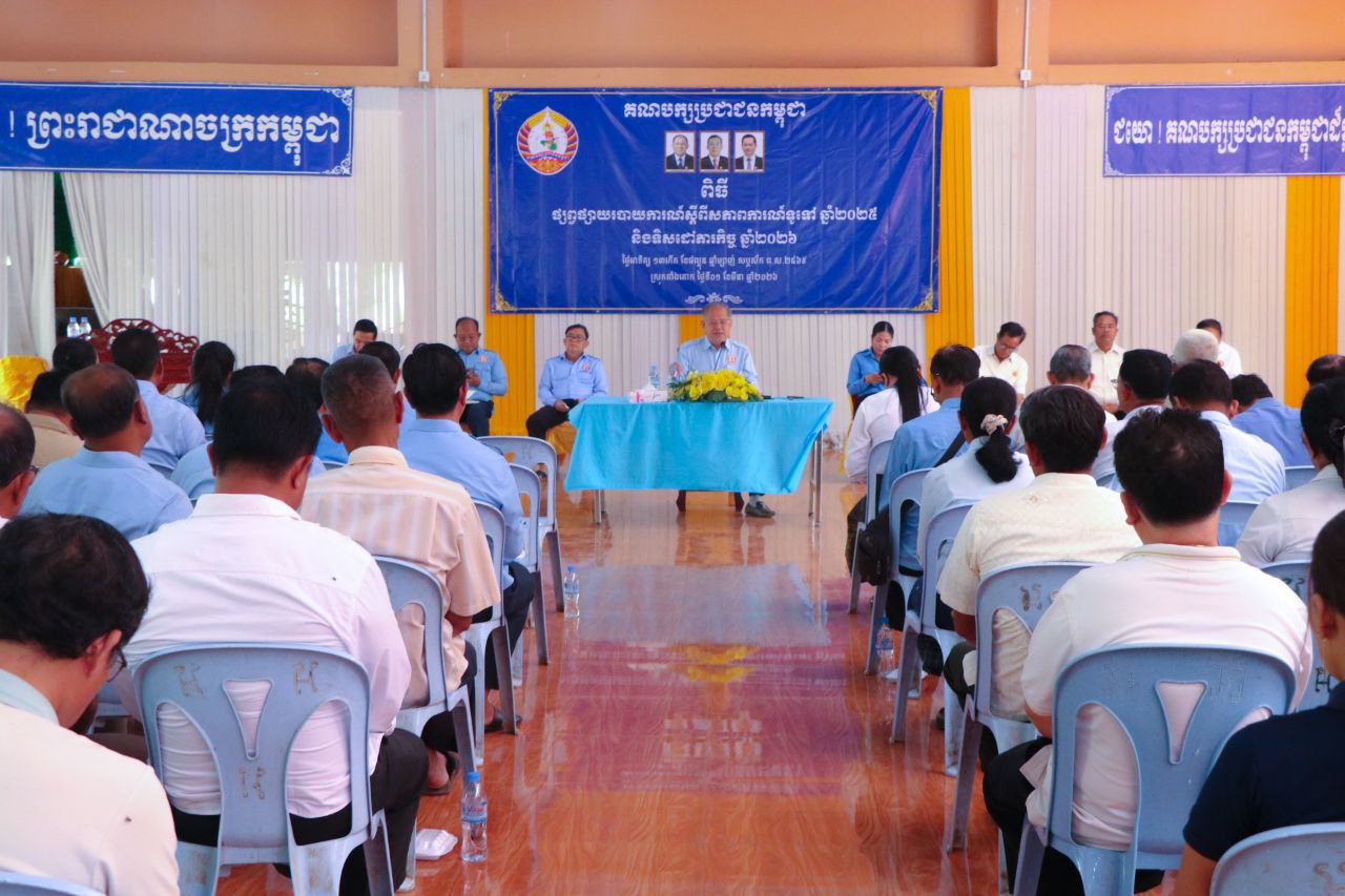 ប្រធានគណៈកម្មាធិការគណបក្សប្រជាជនកម្ពុជាស្រុកតាំងគោក បើកកិច្ចប្រជុំផ្សព្វផ្សាយរបាយការណ៍ស្តីពីសភាពការណ៍ទូទៅ និងការងារគណបក្សឆ្នាំ២០២៥ និងទិសដៅភារកិច្ចឆ្នាំ២០២៦