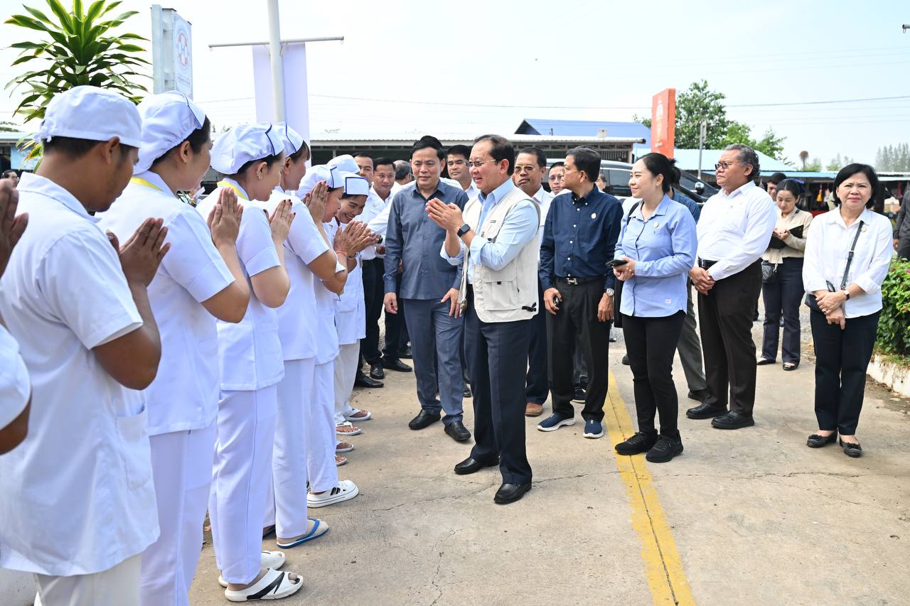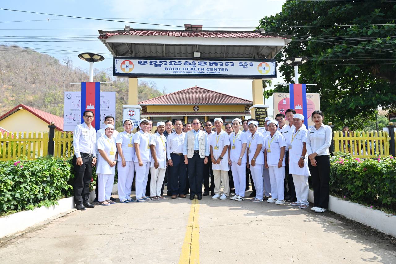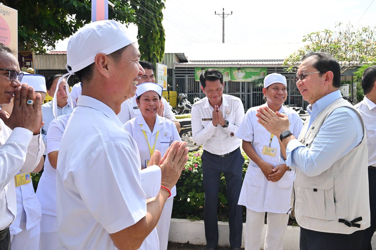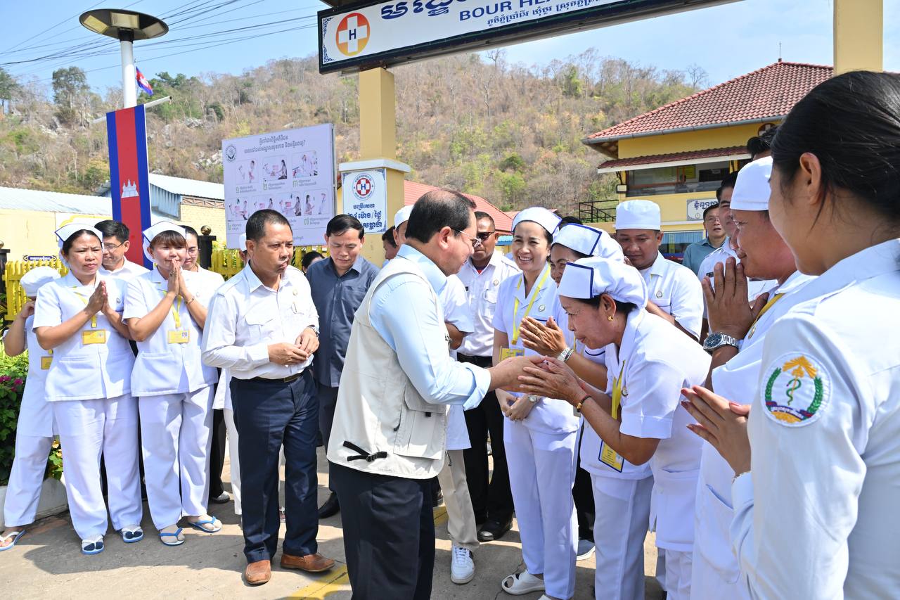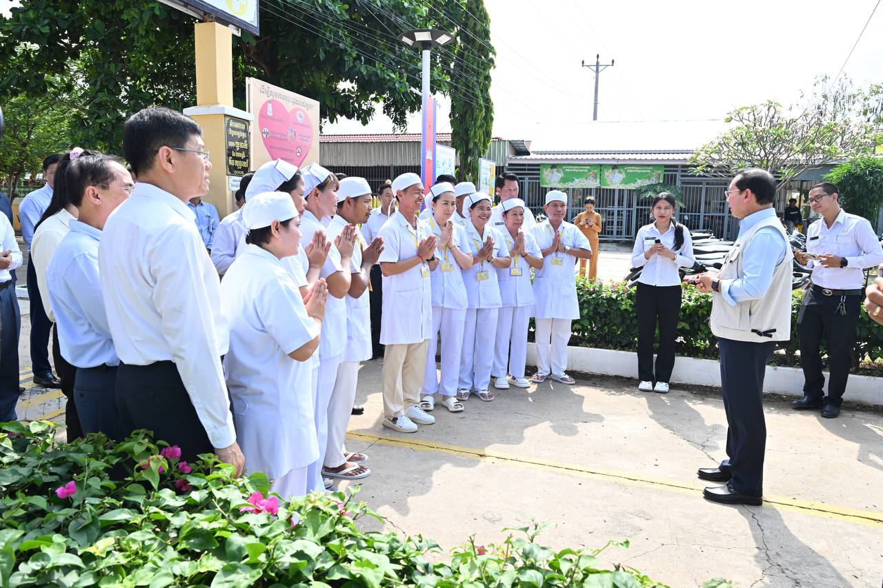 ក្នុងឱកាសនេះលោកសាស្រ្តាចារ្យរដ្ឋមន្រ្តី បានសំណេះសំណាល និងសួរសុខទុក្ខដល់មន្រ្តីសុខាភិបាលទាំងអស់ ដែលបានខិតខំក្នុងការបម្រើសេវាផ្តល់ជូនប្រជាពលរដ្ឋ នៅក្នងមណ្ឌលដែលជាមណ្ឌលសុខភាពយុទ្ធសាស្រ្តអំឡុងពេលរងផលប៉ះពាល់ពីការឈ្លាពានព្រំដែន កម្ពុជា-ថៃ។