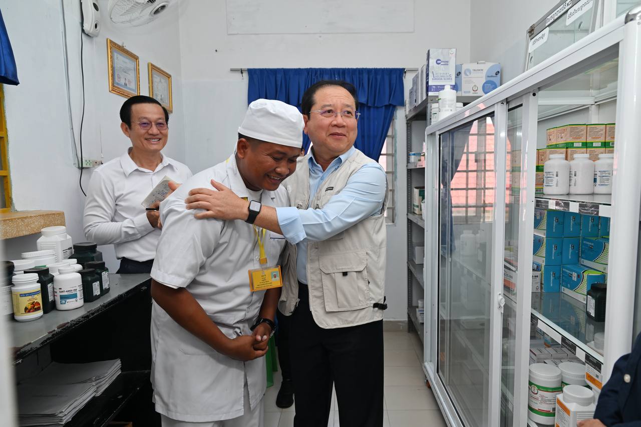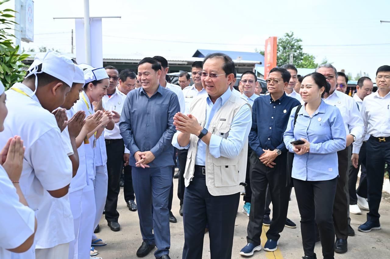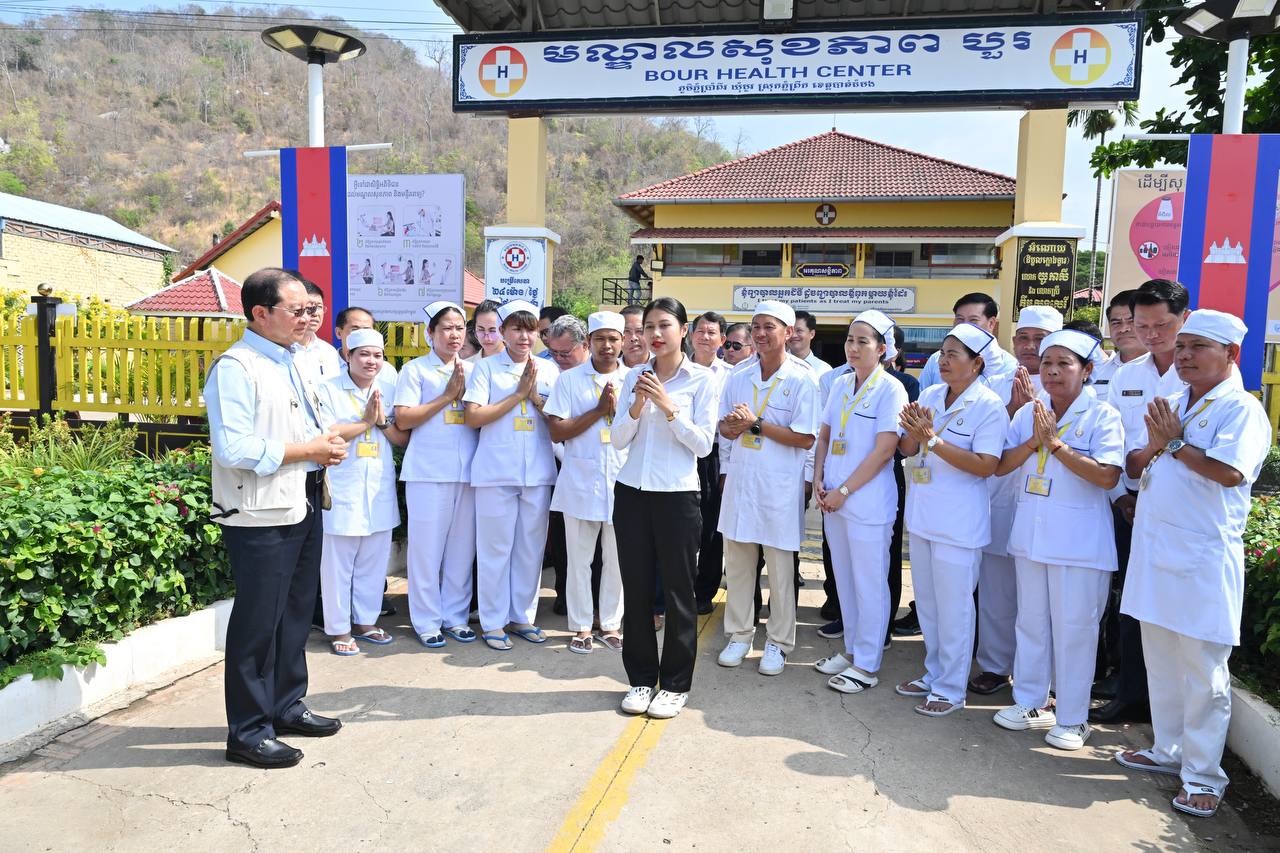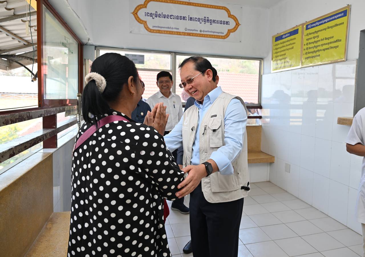 ក្នុងឱកាសនេះលោកសាស្រ្តាចារ្យរដ្ឋមន្រ្តី បានសំណេះសំណាល និងសួរសុខទុក្ខដល់មន្រ្តីសុខាភិបាលទាំងអស់ ដែលបានខិតខំក្នុងការបម្រើសេវាផ្តល់ជូនប្រជាពលរដ្ឋ នៅក្នងមណ្ឌលដែលជាមណ្ឌលសុខភាពយុទ្ធសាស្រ្តអំឡុងពេលរងផលប៉ះពាល់ពីការឈ្លាពានព្រំដែន កម្ពុជា-ថៃ។