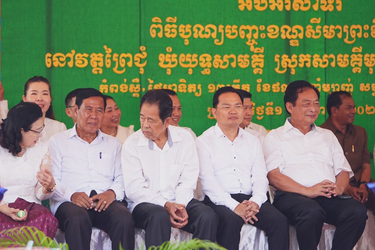(កំពង់ស្ពឺ)៖ នាព្រឹកថ្ងៃទី១ ខែមីនា ឆ្នាំ២០២៦នេះ លោក ហ៊ុន ម៉ានី ឧបនាយករដ្ឋមន្ត្រី រដ្ឋមន្ត្រីក្រសួងមុខងារសាធារណៈ និងជាប្រធានក្រុមការងាររាជរដ្ឋាភិបាលចុះមូលដ្ឋានខេត្តកំពង់ស្ពឺ បានអញ្ជើញចូលរួមក្នុងកម្មវិធីបុណ្យបញ្ចុះខណ្ឌសីមាព្រះវិហារថ្មី នៅវត្តព្រៃជុំ ស្ថិតនៅឃុំយុទ្ធសាមគ្គី ស្រុកសាមគ្គីមុនីជ័យ ខេត្តកំពង់ស្ពឺ។