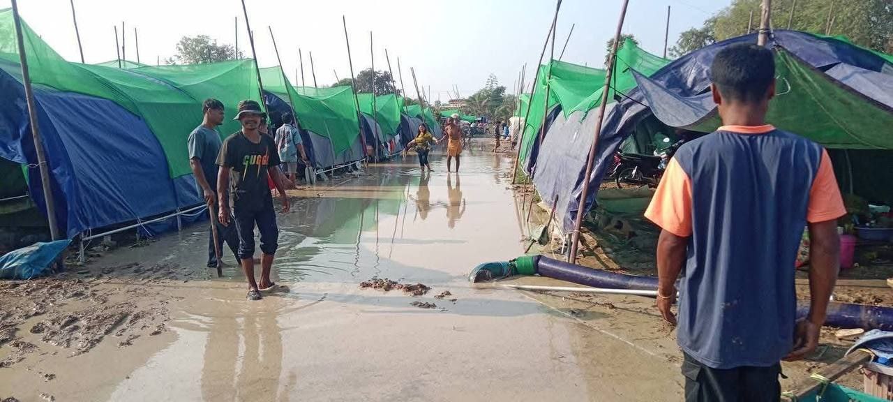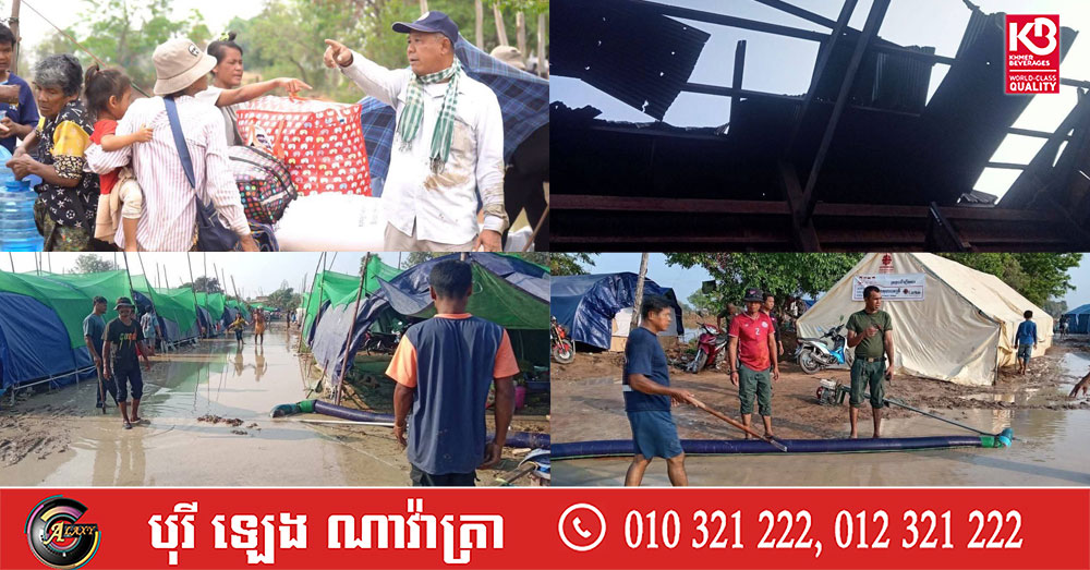 (បន្ទាយមានជ័យ)៖ ជំរំជនភៀសសឹក ដែលមានប្រជាពលរដ្ឋជាជនភៀសសឹកមកស្នាក់នៅរាប់ពាន់គ្រួសារ ក្នុងវត្តកណ្តាល ឃុំគោករមៀត ស្រុកថ្មពួក ខេត្តបន្ទាយមានជ័យ បានជនលិចដោយសារភ្លៀងកក់ខែយ៉ាងធំលាយឡំខ្យល់កន្ត្រាក់ កាលពីថ្ងៃទី២៦ ខែកុម្ភៈ ឆ្នាំ២០២៦ និងបណ្តាលឱ្យខូចខាតដល់ផ្ទះប្រពលរដ្ឋ ៥ខ្នងនៅស្រុកថ្មពួក ក៏ប៉ះពាល់ខូចខាត នៅឃុំគំរូ ឃុំបន្ទាយឆ្មារ ស្រុកថ្មពួកខេត្តបន្ទាយមានជ័យ ។