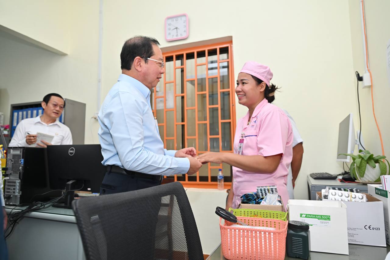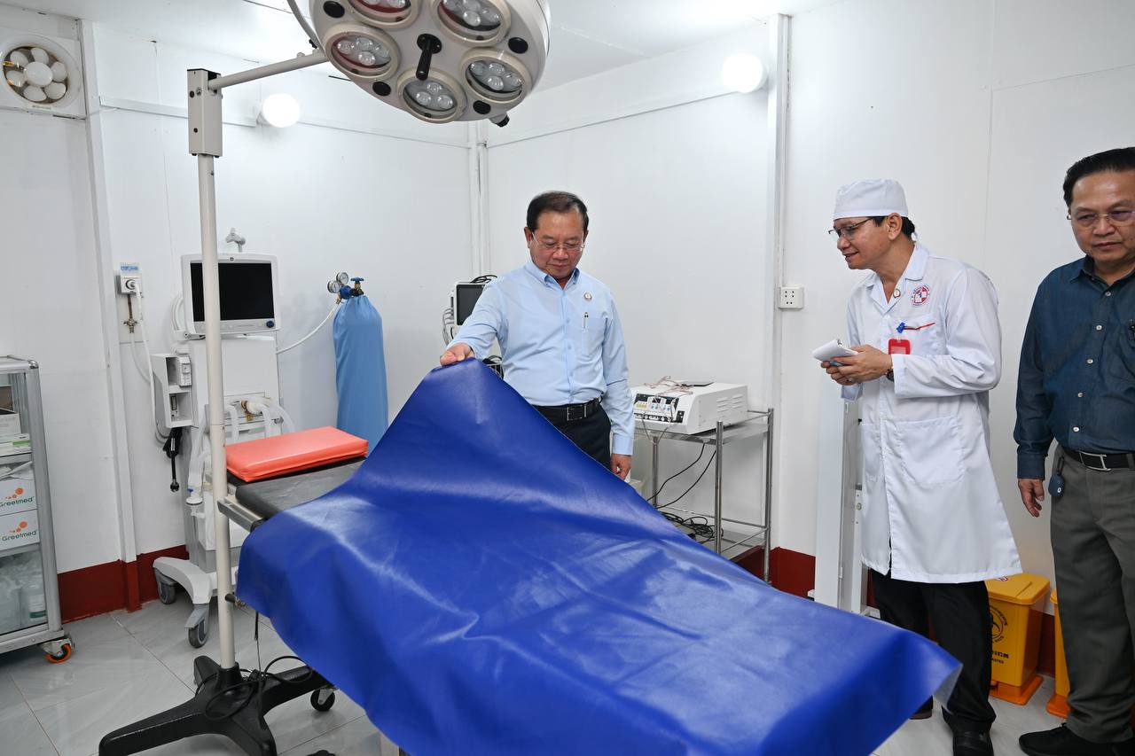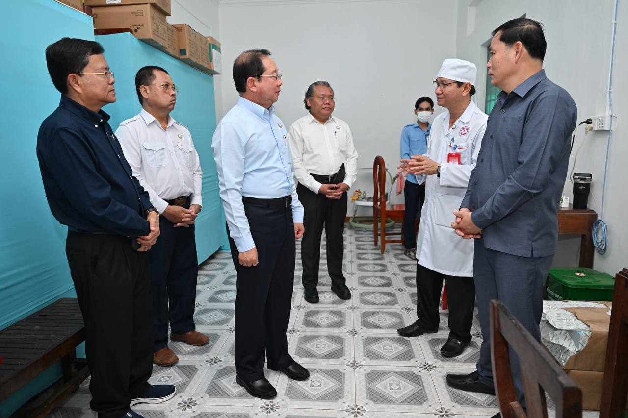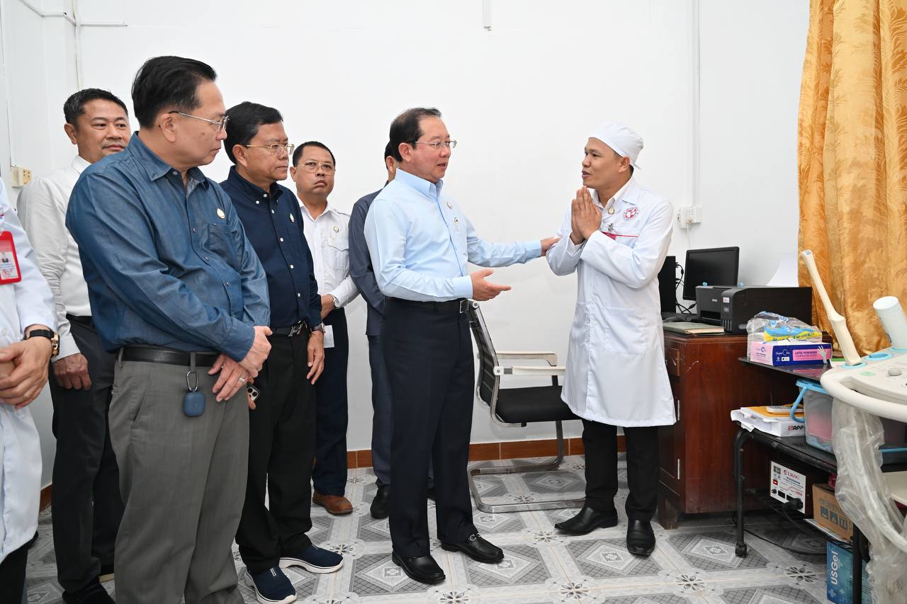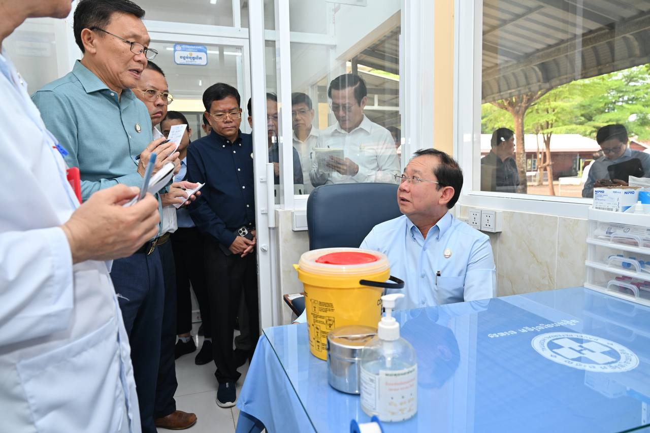 លោកសាស្ត្រាចារ្យរដ្ឋមន្ត្រី ក៏បានចុះពិនិត្យនៅតាមទីតាំងផ្នែកមួយចំនួន៖ អគារផ្នែកពិនិត្យជំងឺឆ្លង ផ្នែកមន្ទីរពិសោធន៍ ជំងឺទូទៅមនុស្សចាស់ ផ្នែកពិគ្រោះជំងឺក្រៅ ផ្នែកសង្រ្គោះបន្ទាន់ ផ្នែកជំងឺកុមារ ផ្នែកសម្ភព និងរោគស្រ្តី ផ្នែកបញ្ជូនសង្គ្រោះបន្ទាន់ វះកាត់តូចរបួស និងកន្លែងរក្សាទុកអុកស៊ីសែន។