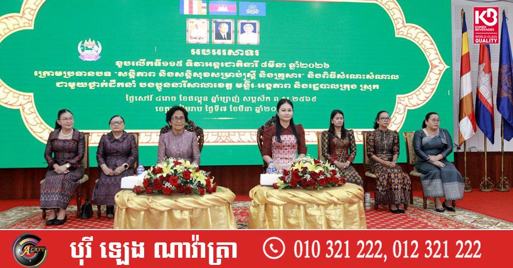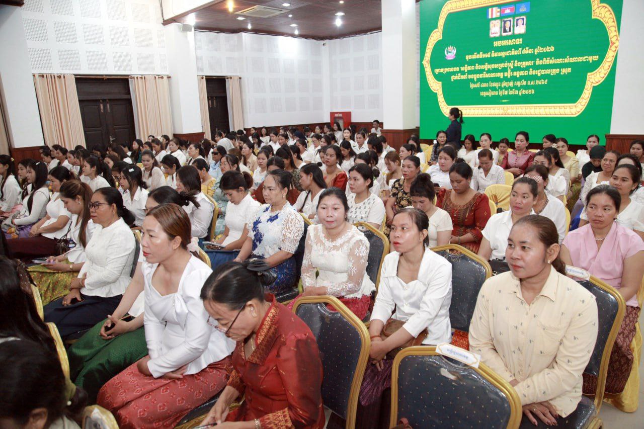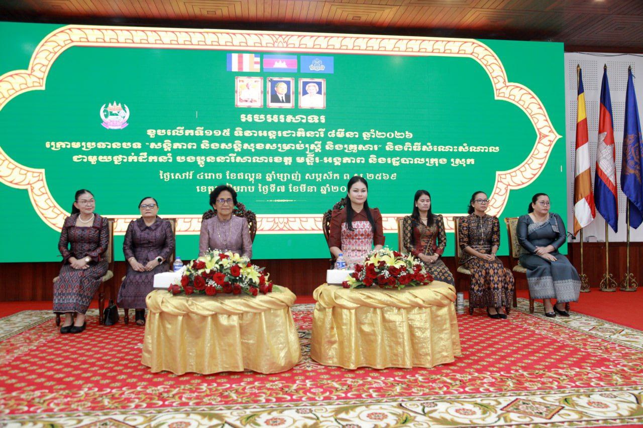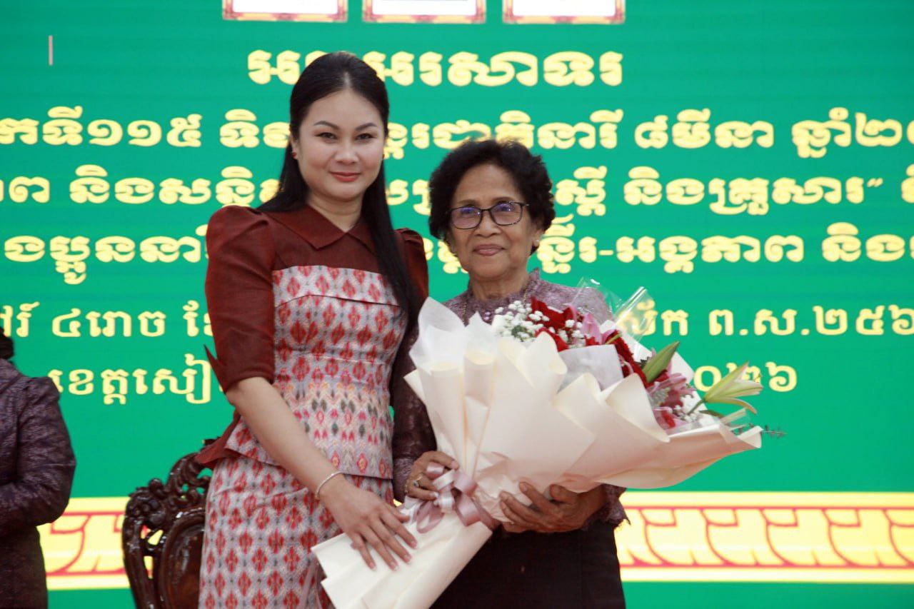 (សៀមរាប)៖ រដ្ឋបាលខេត្តសៀមរាប នៅថ្ងៃទី០៧ ខែមីនា ឆ្នាំ២០២៦នេះ បានរៀបចំពិធីអបអរសាទរខួបលើកទី១១៥ ទិវាអន្តរជាតិនារី ៨មីនា ក្រោមអធិបតីភាព លោកស្រី ម៉ននី រង្សី អភិបាលរងខេត្តសៀមរាប ដោយមានការចូលរួមពីសមាជិកាក្រុមប្រឹក្សាខេត្ត ថ្នាក់ដឹកនាំ និងតំណាងមន្ទីរ-អង្គភាពជុំវិញខេត្តប្រមាណជាង ៣០០នាក់។