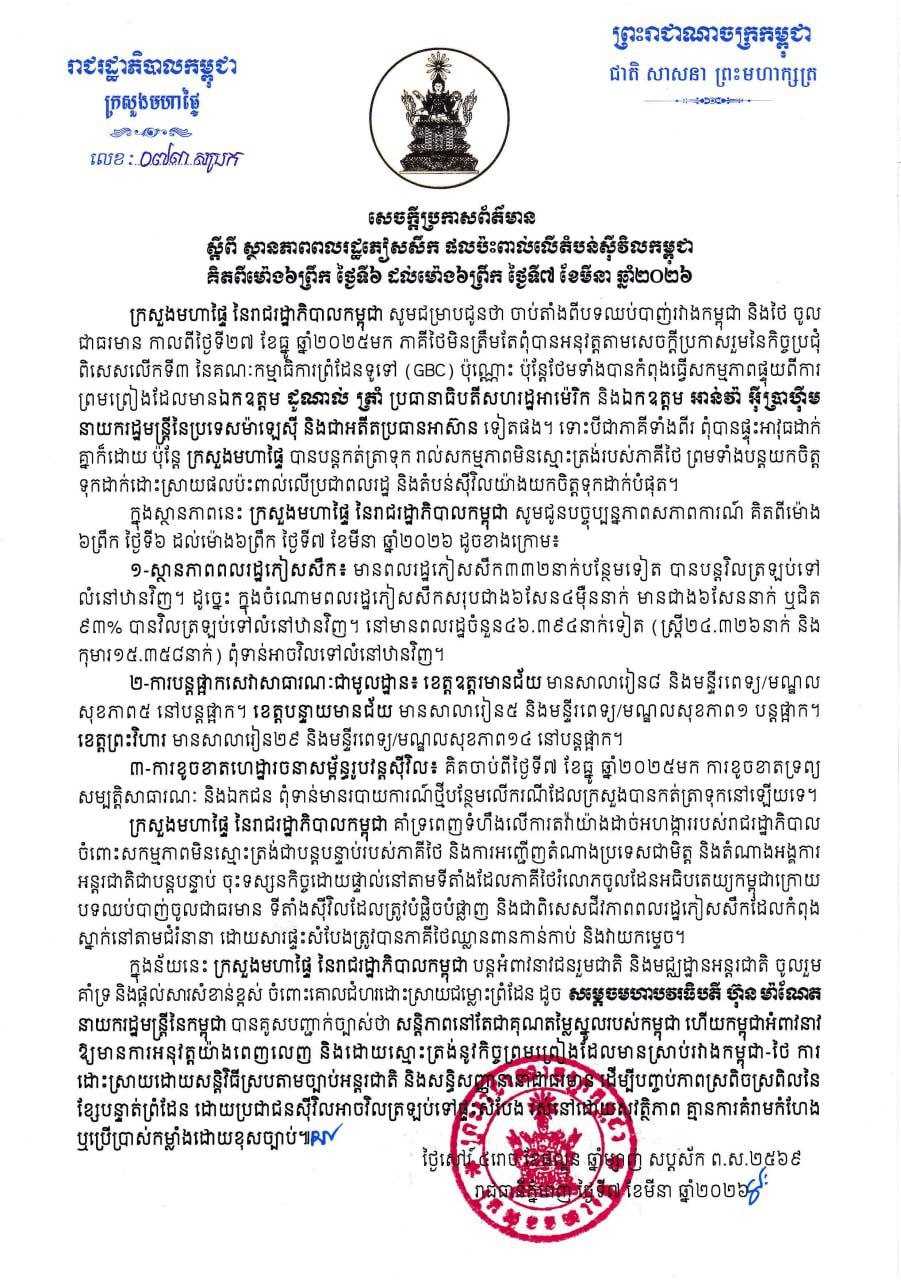 ខាងក្រោមនេះ ជាសេចក្ដីប្រកាសព័ត៌មានរបស់ក្រសួងមហាផ្ទៃ៖