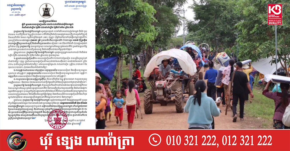 (ភ្នំពេញ)៖ ក្រសួងមហាផ្ទៃ នៅថ្ងៃទី០៧ ខែមីនា ឆ្នាំ២០២៦នេះ បានឲ្យដឹងថា គិតចាប់ពីម៉ោង ៦ព្រឹក ថ្ងៃទី០៦ ដល់ម៉ោង៦ព្រឹក ថ្ងៃទី០៦ ខែមីនា ឆ្នាំ២០២៦នេះ មានប្រជាពលរដ្ឋភៀសសឹក ៣៣២នាក់បន្ថែមទៀត បានវិលត្រឡប់ទៅលំនៅឋានវិញ។ ដូច្នេះក្នុងចំណោមពលរដ្ឋភៀសសឹកសរុបជាង៦សែន ៤ម៉ឺននាក់ មានជាង ៦សែននាក់ ស្មើនឹងជិត ៩៣ភាគរយ បានវិលត្រឡប់ទៅលំនៅឋានវិញ។