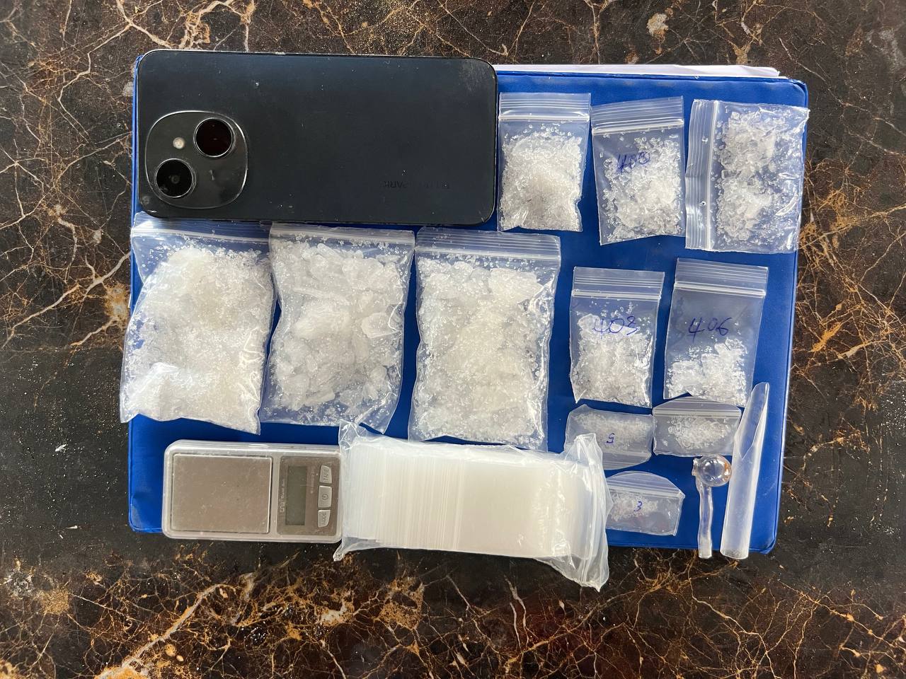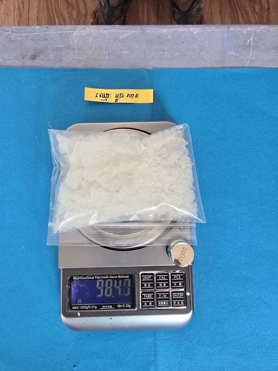 កម្លាំងជំនាញកងរាជអាវុធហត្ថ ចាប់យកវត្ថុតាងបានរួមមាន ម្សៅក្រាមសថ្លាសង្ស័យជាសារធាតុញៀនចំនួន១១កញ្ចប់ ទម្ងន់៩២.៣៥ក្រាម (ធំ៣កញ្ចប់, មធ្យម៥កញ្ចប់ និងតូច៣កញ្ចប់), ទូរស័ព្ទចំនួន១គ្រឿង, ជញ្ជីងចំនួន១គ្រឿង និងសម្ភារៈប្រើប្រាស់គ្រឿងញៀនមួយចំនួនទៀត។