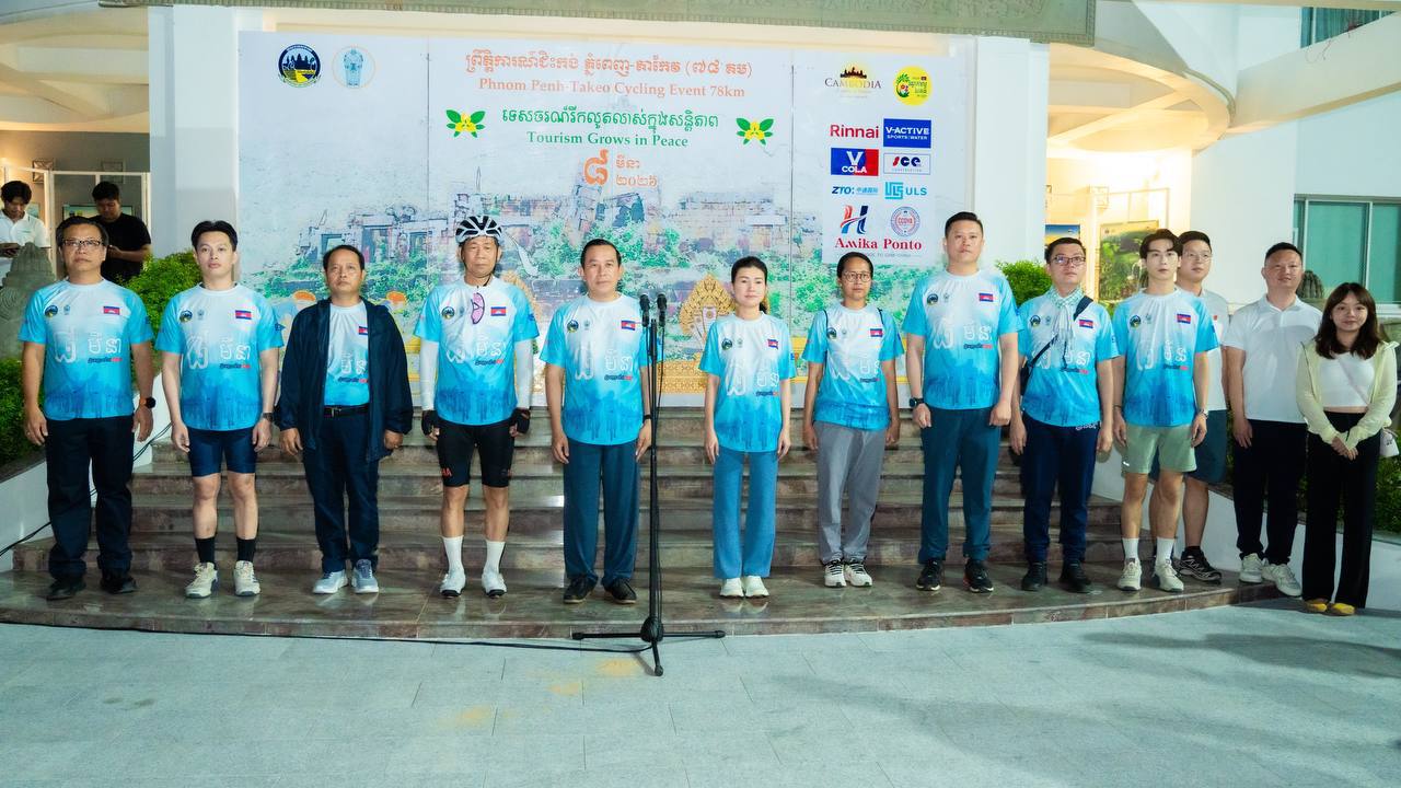 (តាកែវ)៖ លោក ហួត ហាក់ រដ្ឋមន្ត្រីក្រសួងទេសចរណ៍ និងភរិយា រួមជាមួយលោក វ៉ី សំណាង អភិបាលនៃគណៈអភិបាលខេត្តតាកែវ នៅព្រឹកថ្ងៃទី៨ ខែមីនា ឆ្នាំ២០២៦ បានអញ្ជើញជាអធិបតីក្នុងព្រឹត្តិការណ៍ជិះកង់ «ភ្នំពេញ–តាកែវ» ចម្ងាយ ៧៨ គីឡូម៉ែត្រ ក្រោមប្រធានបទ «ទេសចរណ៍រីកលូតលាស់ក្នុងសន្តិភាព»។
