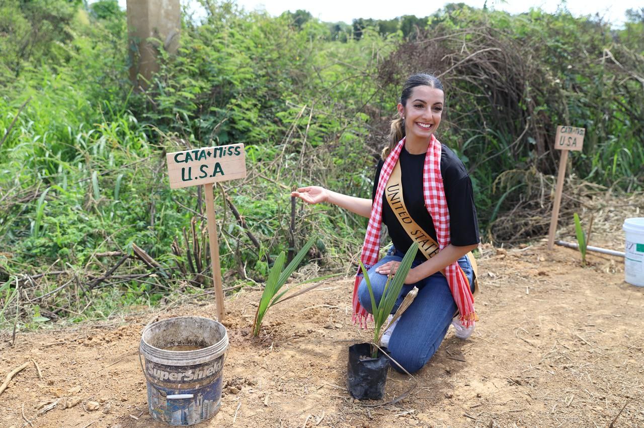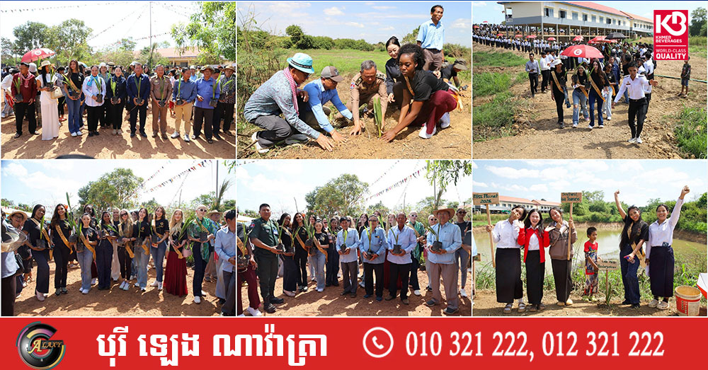 បវរកញ្ញាភពផែនដីអន្ដរជាតិ មកពី ៣៥ប្រទេសជុំវិញពិភពលោក ចូលរួមដាំដើមត្នោត ៣០០ដើម នៅសហគមន៍ទេសចរណ៍កំពង់ឃ្លាំង ដើម្បីជំរុញការអភិវឌ្ឍវិស័យទេសចរណ៍
