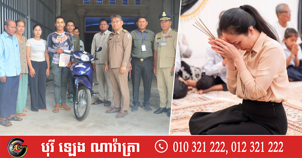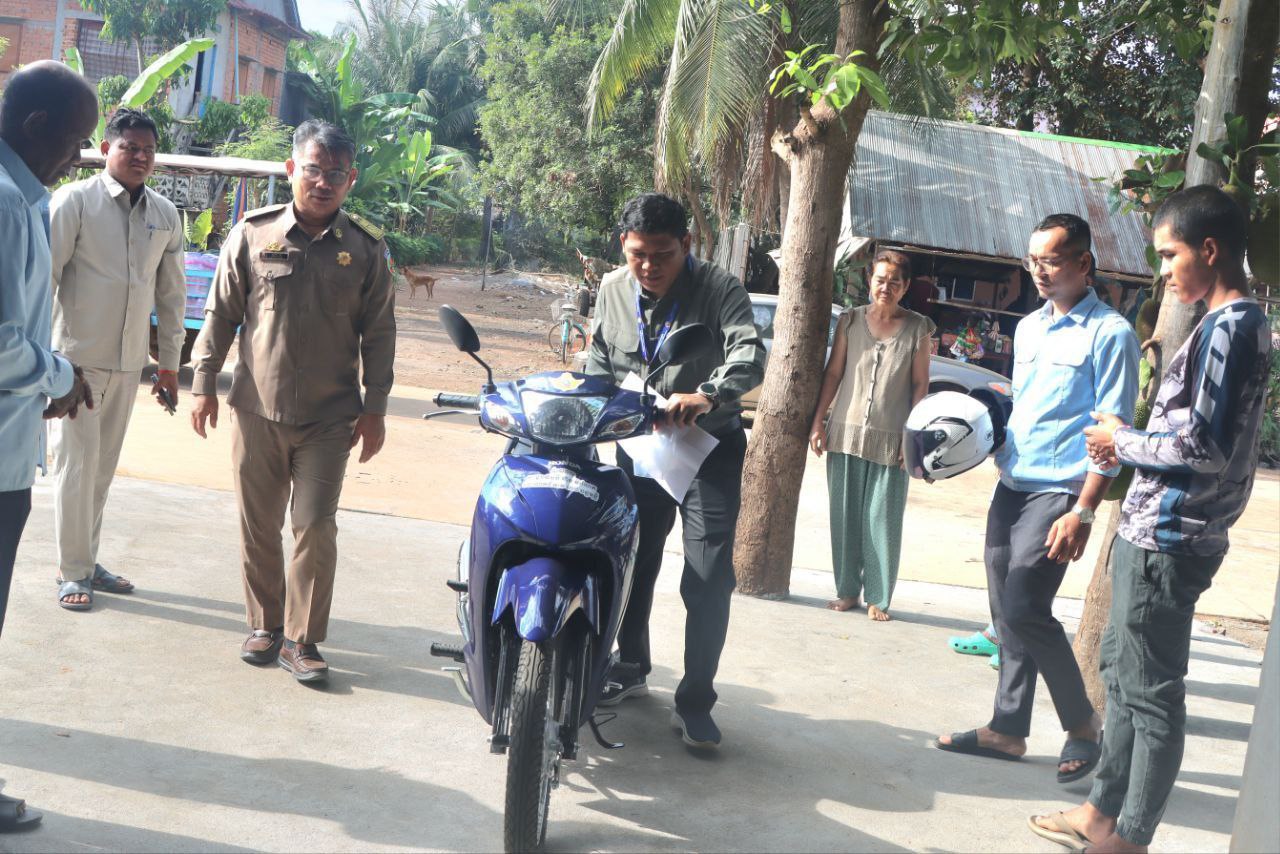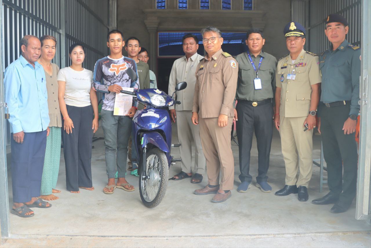 ម៉ូតូ ១គ្រឿង ជាអំណោយរបស់លោកជំទាវបណ្ឌិត ពេជ ចន្ទមុន្នី ហ៊ុនម៉ាណែត ស្ត្រីទី១ របស់កម្ពុជា ត្រូវបានប្រគល់ជូនគ្រួសារសពវីរយុទ្ធជនពលីក្នុងសមរភូមិ រស់នៅក្នុងស្រុកកំពង់លែង