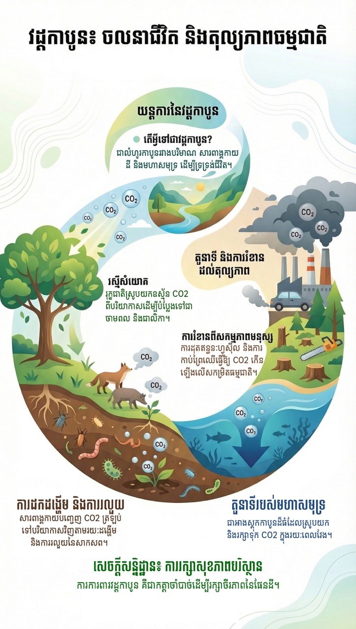 វិចារណកថា៖ វដ្តកាបូន (Carbon Cycle): ចលនាជីវិត និងតុល្យភាពធម្មជាតិ