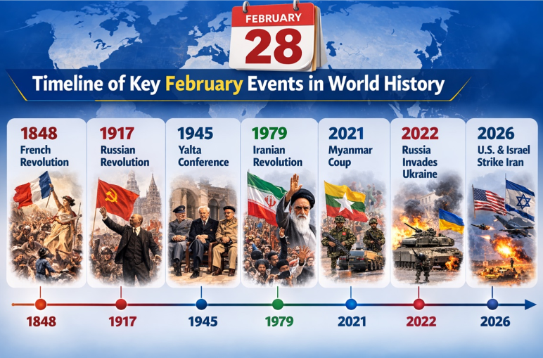 សរុបសេចក្តីមក ព្រឹត្តិការណ៍ជាច្រើនដែលកើតឡើងក្នុងខែកុម្ភៈ មិនមែនមានន័យថា ខែនេះមានអំណាចពិសេសក្នុងប្រវត្តិសាស្ត្រទេ។ ផ្ទុយទៅវិញ វាបង្ហាញពីការប្រសព្វគ្នារវាងអាកាសធាតុ ភូមិសាស្ត្រ និងការគណនាយុទ្ធសាស្ត្ររបស់មេដឹកនាំ។ នៅក្នុងភូមិសាស្ត្រនយោបាយ ពេលវេលាគ្រាន់តែជាឧបករណ៍មួយក្នុងការគណនាយុទ្ធសាស្ត្រ ខណៈមូលហេតុសំខាន់នៅតែស្ថិតនៅលើអំណាច ផលប្រយោជន៍ និងសន្តិសុខរបស់រដ្ឋ។ ដូច្នេះ ប្រវត្តិសាស្ត្របង្ហាញថា ពេលវេលានៃព្រឹត្តិការណ៍មិន មែនជាកត្តាសំខាន់បំផុតនោះទេ ប៉ុន្តែការគណនាអំណាច និងផល ប្រយោជន៍ជាតិរបស់រដ្ឋធំៗ គឺជាកត្តាសំខាន់ដែលជំរុញឱ្យព្រឹត្តិការណ៍ នយោបាយ និងយោធាធំៗកើតឡើង៕