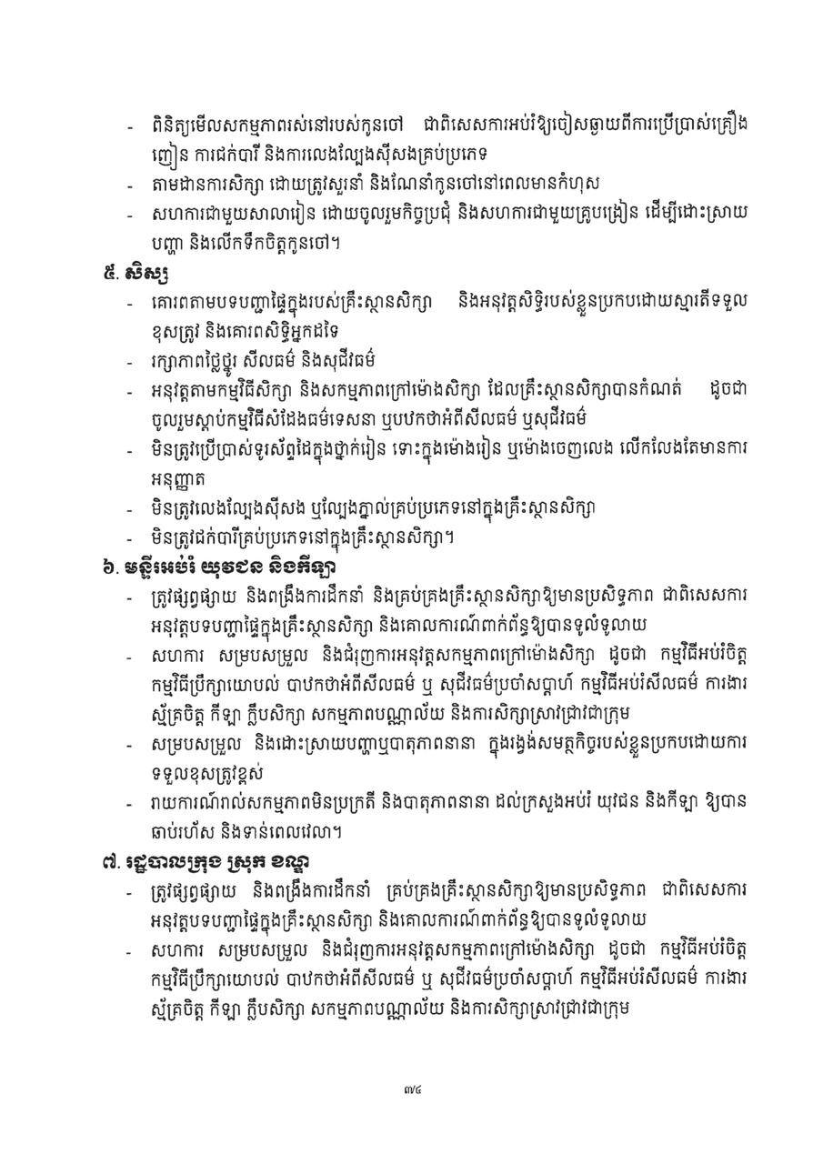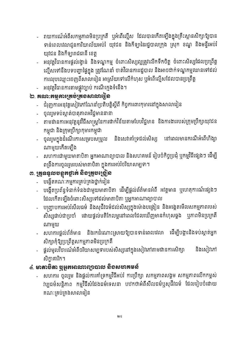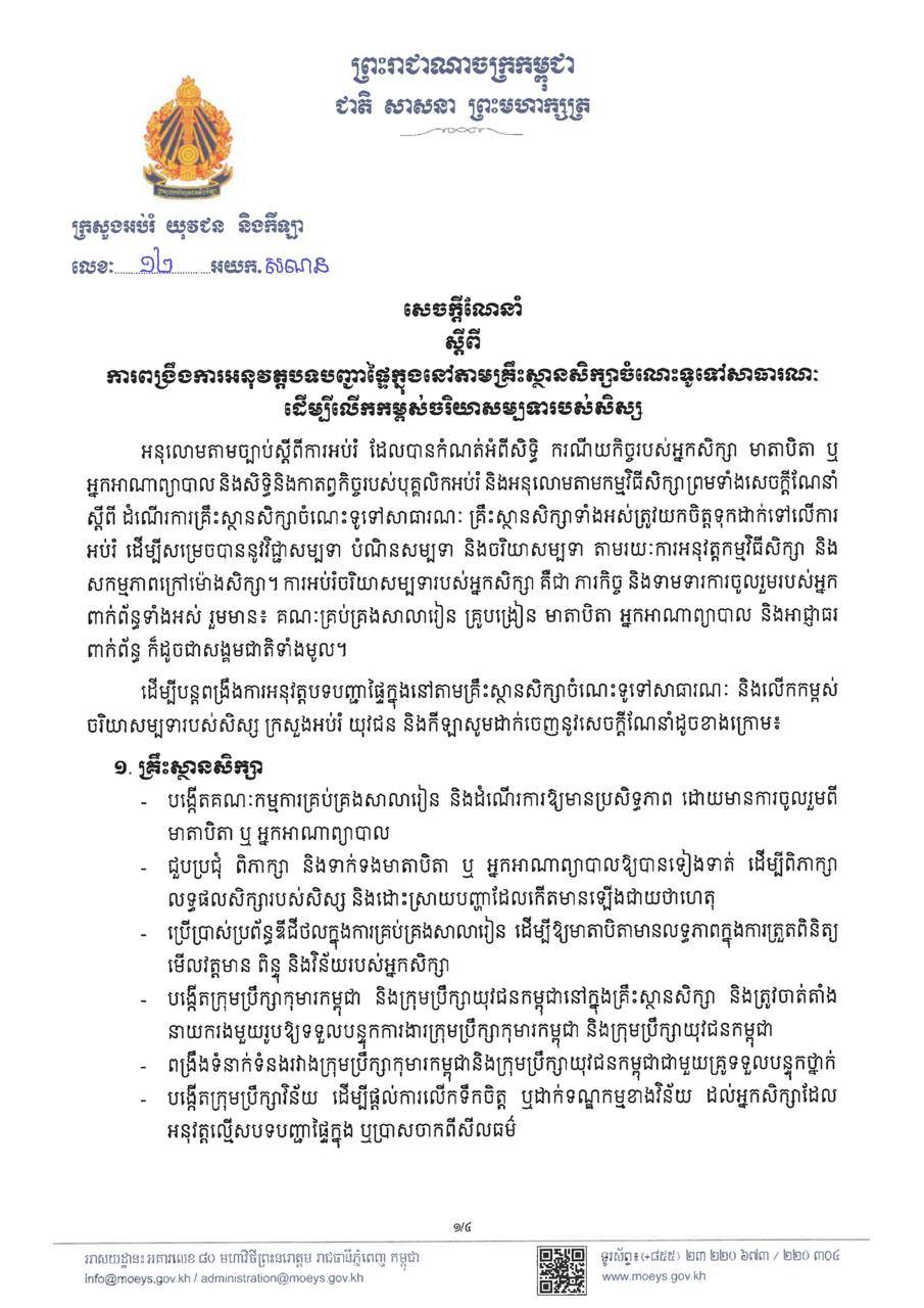 ក្រសួងអប់រំ ចេញសេចក្ដីណែនាំគ្រឹះស្ថានសិក្សាចំណេះទូទៅសាធារណៈ (សាលារដ្ឋ) លើកកម្ពស់ចរិយាសម្បទារបស់សិស្ស