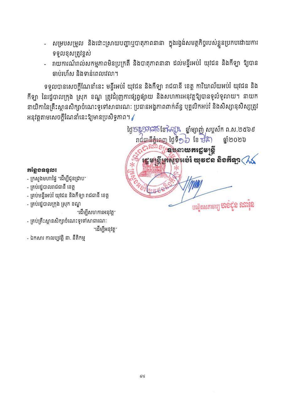 ខាងក្រោមនេះជាសេចក្តីណែនាំរបស់ក្រសួង៖