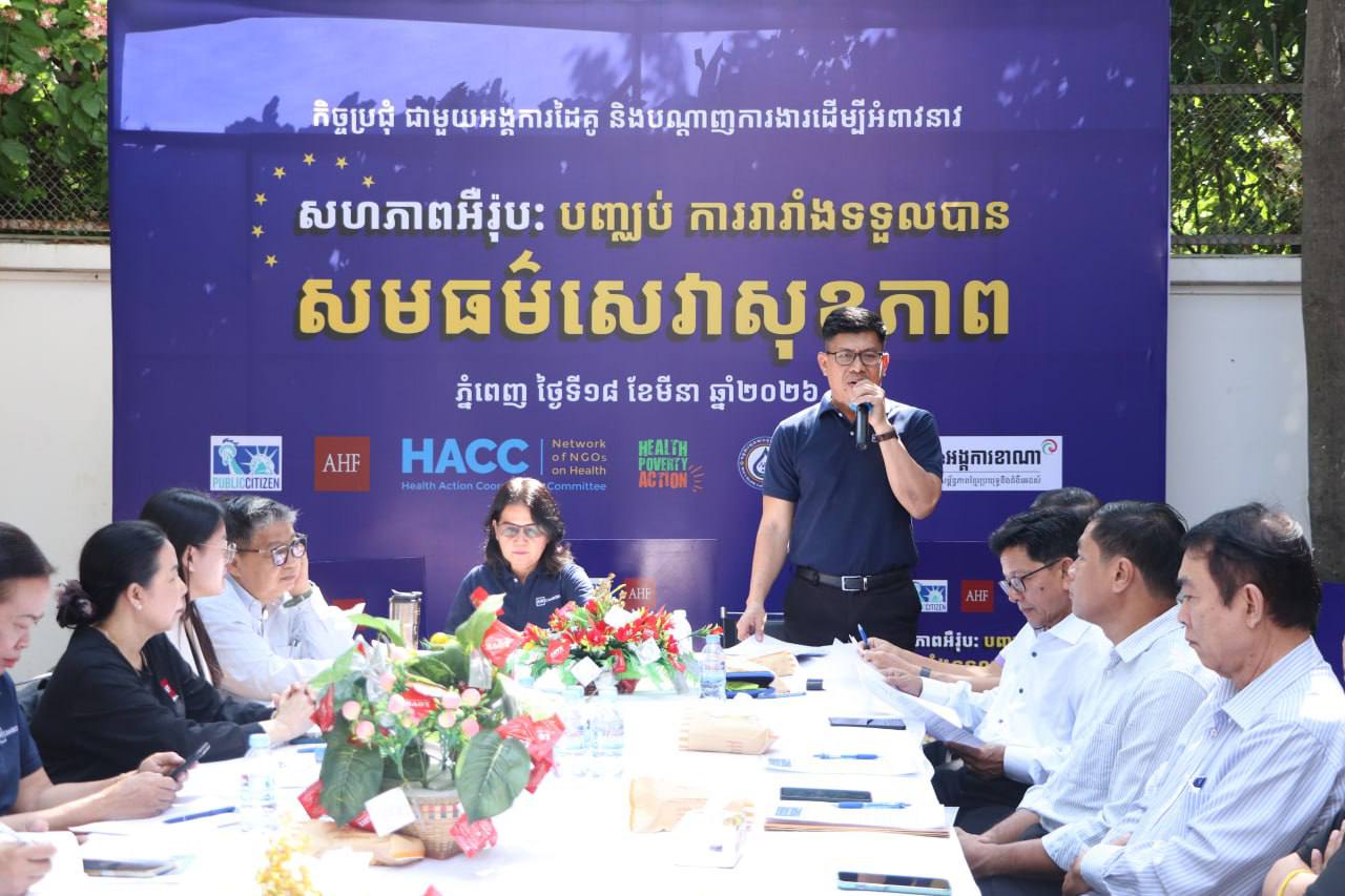 អង្គការសង្គមស៊ីវិល និងបណ្តាញការងារជាច្រើនស្ថាប័ននៅកម្ពុជា រួមគ្នាអំពាវនាវឱ្យសហភាពអឺរុប (EU ) បញ្ឈប់ការរារាំងការទទួលបានសមធម៌សេវាសុខភាព