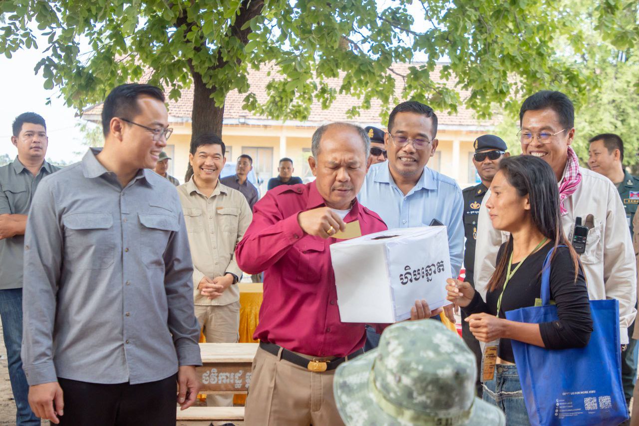 (បន្ទាយមានជ័យ)៖ រដ្ឋបាលខេត្តបន្ទាយមានជ័យ បានរៀបចំពិធីចាប់ឆ្នោតរេីសក្បាលដី ជូនដល់បងប្អូនជនភៀសសឹក ដើម្បីចូលរស់នៅ ជម្រកបណ្ដោះអាសន្ន ផ្ទះអតីតយុទ្ធជន ស្ថិតនៅភូមិចក់ពួក ឃុំស្លក្រាម ស្រុកស្វាយចេក ខេត្តបន្ទាយមានជ័យ។