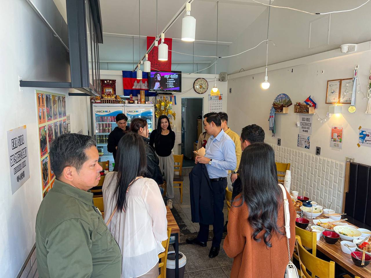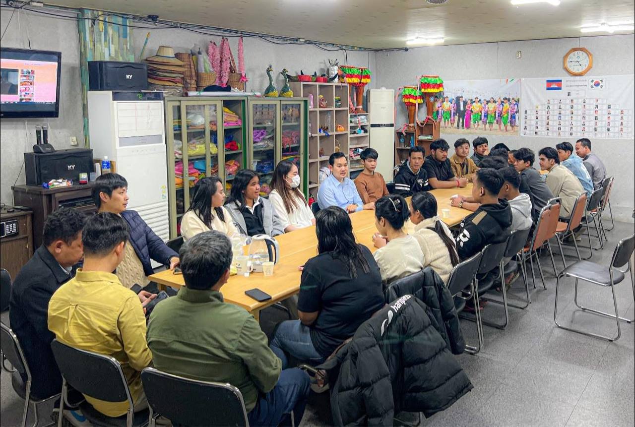 (កូរ៉េខាងត្បូង)៖ លោក ឃួន ផុនរតនៈ ឯកអគ្គរាជទូតកម្ពុជាប្រចាំសាធារណរដ្ឋកូរ៉េ និងសហការី នៅថ្ងៃទី១៧ ខែមីនា ឆ្នាំ២០២៦ បានចុះជួបសួរសុខទុក្ខ និងសំណេះសំណាលជាមួយបងប្អូនសហគមន៍ខ្មែរ នៅភោជនីយដ្ឋានយូរ៉ាម្ហូបខ្មែរក្នុងទីក្រុងក្វាងជូធំ និងបងប្អូនពលករ-ពលការីនី ដែលកំពុងស្នាក់នៅបណ្ដោះអាសន្ននៅមជ្ឈមណ្ឌលឆុនណាំក្វាងជូ ក្នុងអំឡុងពេលរង់ចាំស្វែងរកការងារថ្មី។