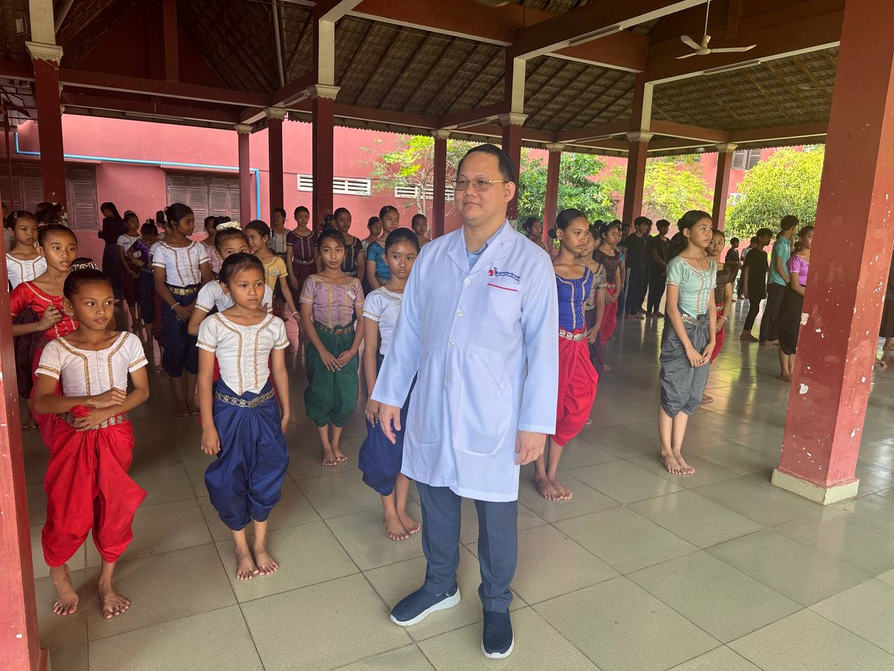 (ភ្នំពេញ)៖ នៅព្រឹកថ្ងៃទី២០ ខែមីនា ឆ្នាំ២០២៦នេះ ក្រុមគ្រូពេទ្យស្មគ្រចិត្តកម្ពុជា-ចិន បានរៀបចំកម្មវិធីមនុស្សធម៌មួយ ដោយចុះពិនិត្យ សុខភាពបេះដូងដោយឥតគិតថ្លៃ ជូនដល់សិស្សានុសិស្សនៃសាលាមធ្យមសិក្សាវិចិត្រសិល្បៈ ជាង៧០០នាក់ ក្នុងរាជធានីភ្នំពេញ ដើម្បីជាផ្នែកមួយនៃការរួមចំណែកយកចិត្តទុកដាក់លើសុខភាពកុមារ និងយុវជនកំពុងក្លាយជាបញ្ហាសំខាន់មួយក្នុងសង្គម។