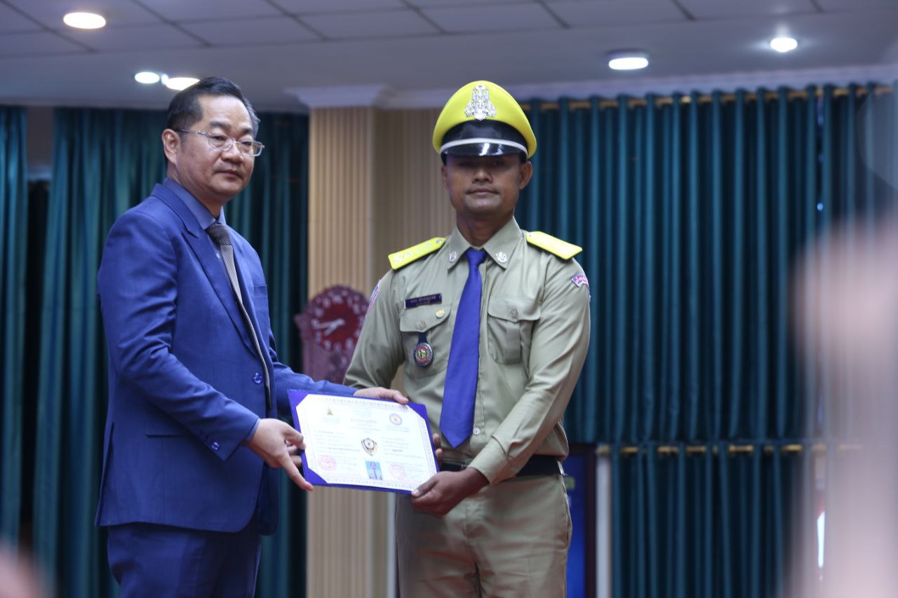 លោកបណ្ឌិត បានថ្លែងកោតសរសើរដល់ប្អូនៗ ជានិស្សិតនគរបាលជ័យលាភីទាំងអស់ដែលបានខិតខំសិក្សាទទួលបានជោគជ័យ ព្រមទាំងបានផ្តាំផ្ញើឱ្យបន្តការសិក្សាពង្រឹង និងពង្រីកចំណេះដឹងឱ្យកាន់តែទូលំទូលាយបន្ថែមទៀត។ ជាចុងក្រោយ លោកបណ្ឌិត បានផ្ដល់កិត្តិយសប្រគល់វិញ្ញាបនបត្រដល់ជ័យលាភីជានិមិត្តរូបចំនួន២៥នាក់ផងដែរ៕