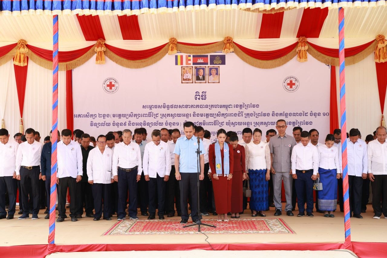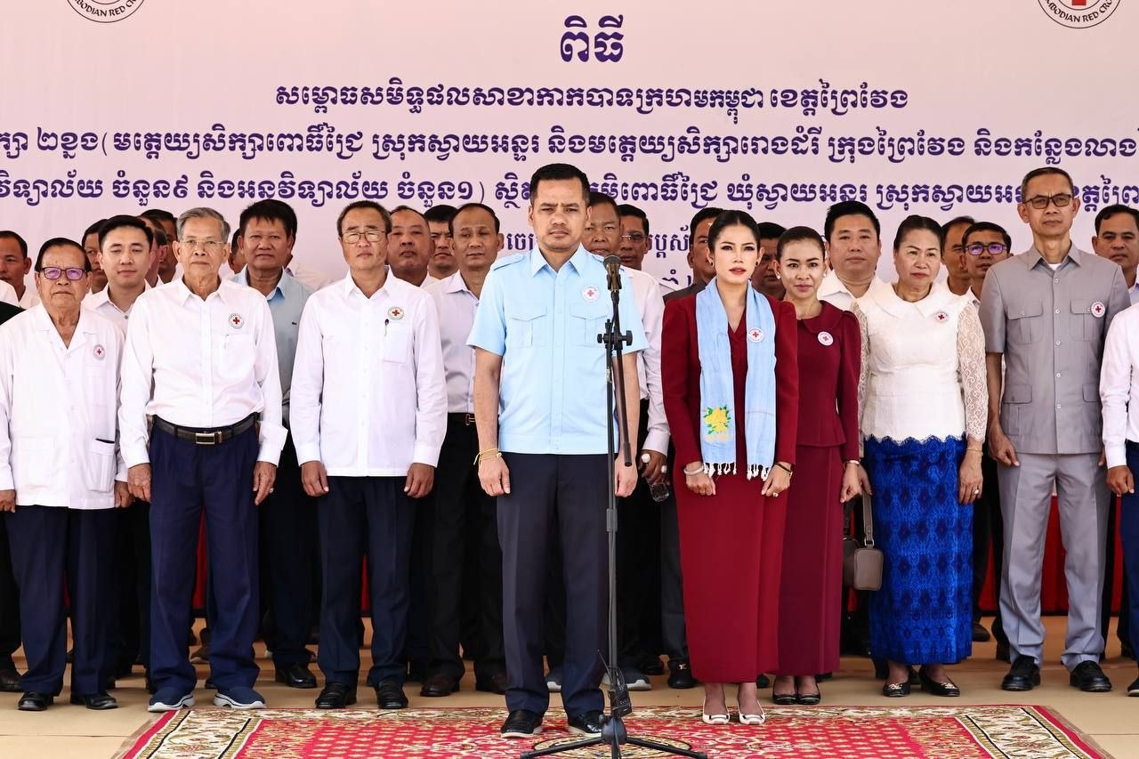 (ព្រៃវែង)៖ លោកអភិសន្តិបណ្ឌិត ស សុខា ប្រធានកិត្តិយសសាខាកាកបាទក្រហមកម្ពុជា ខេត្តព្រៃវែង និងលោកស្រី កែ សួនសុភី សសុខា នៅថ្ងៃទី២០ ខែមីនា ឆ្នាំ២០២៦ អញ្ជើញសម្ពោធដាក់អោយប្រើប្រាស់អគារមត្តេយ្យ សិក្សាស្តង់ដា ១ខ្នង មាន ៤បន្ទប់ ដែលជាអំណោយដ៏ថ្លៃថ្លារបស់សាខាកាកបាទក្រហមកម្ពុជាខេត្តព្រៃវែង នៅបរិវេណសាលាបឋមសិក្សាពោធិ៍ជ្រៃ ស្ថិតនៅភូមិពោធិ៍ជ្រៃ ឃុំស្វាយអន្ទរ ស្រុកស្វាយអន្ទរ ខេត្តព្រៃវែង។