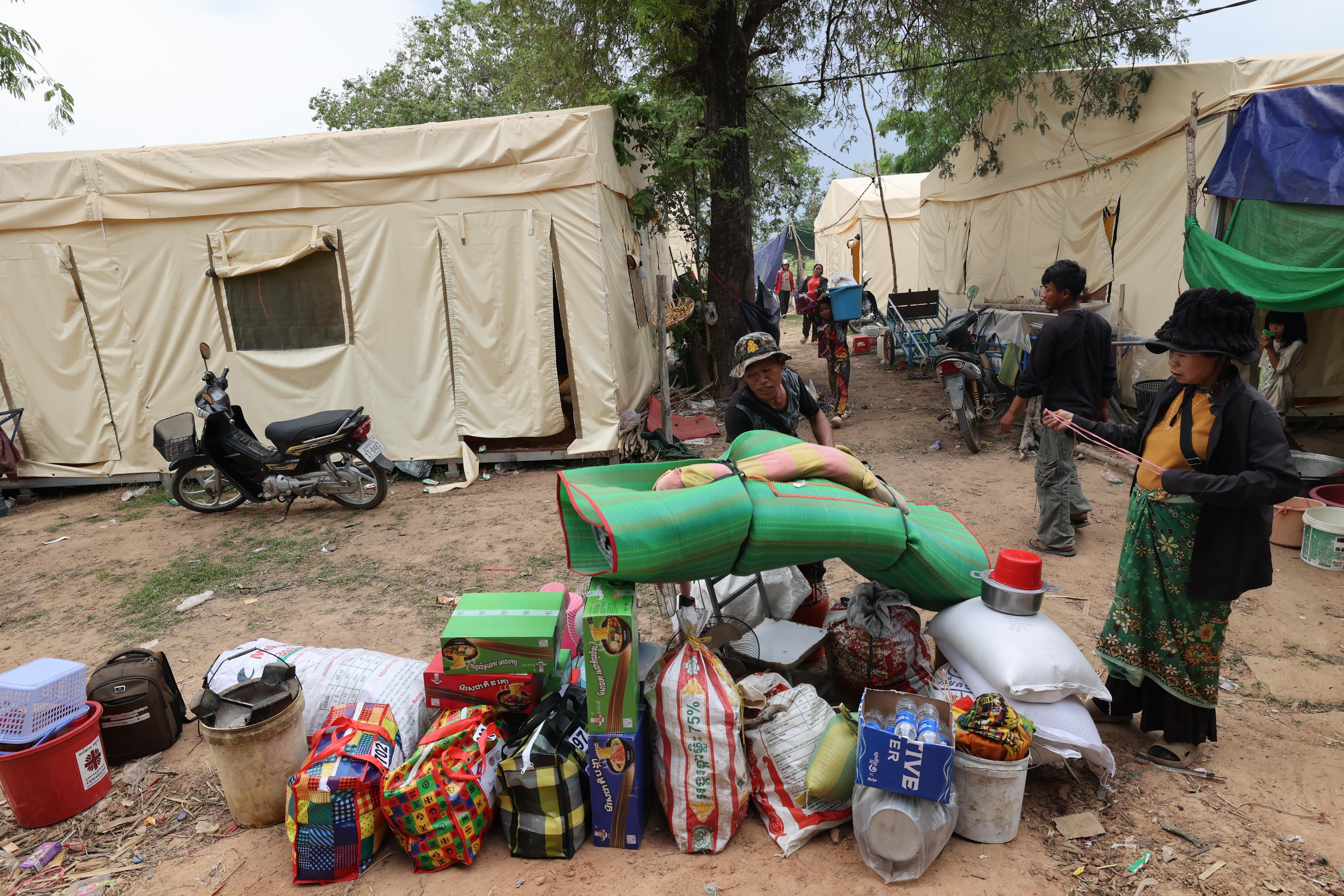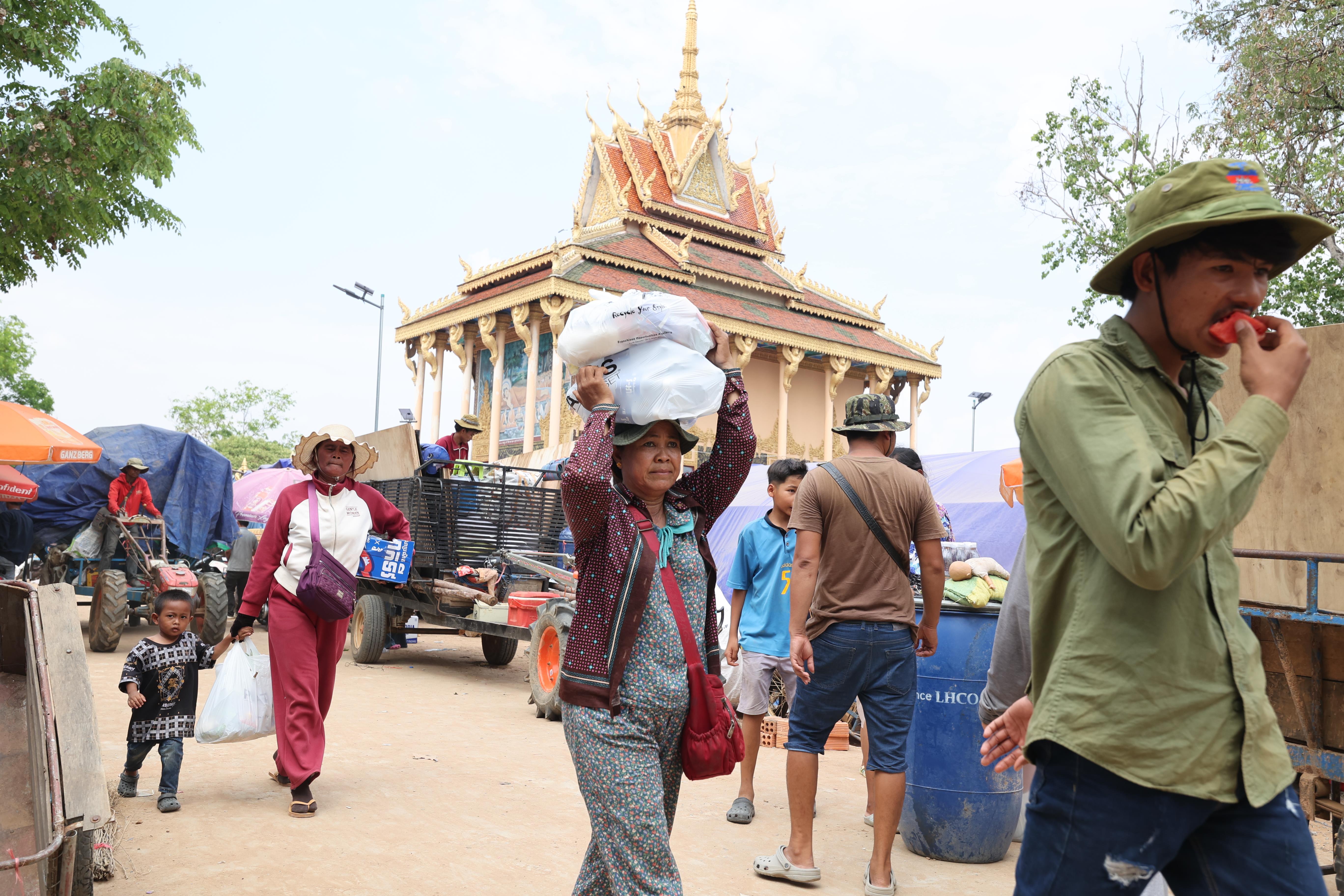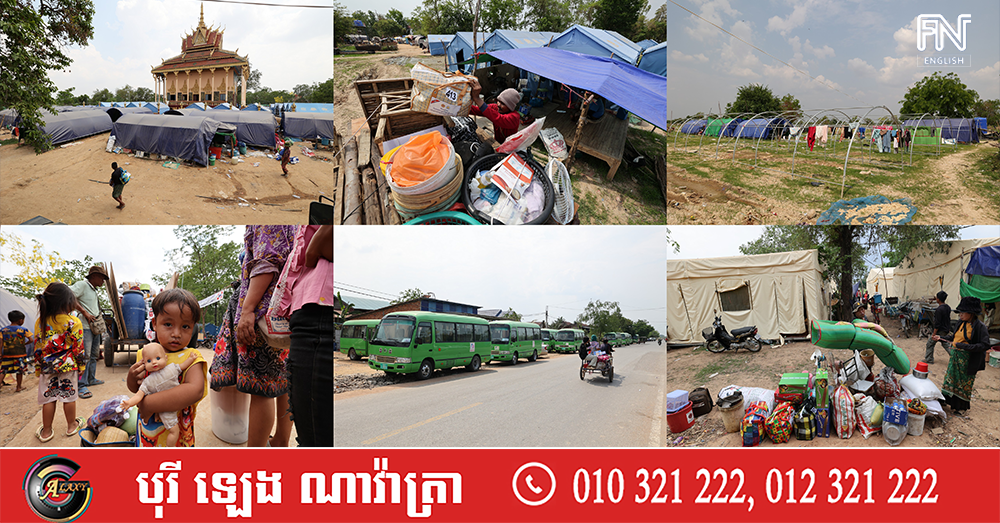 ទិដ្ឋភាពពលរដ្ឋភៀសសឹកនៅជំរំវត្តកណ្តោល កំពុងរៀបចំសម្ភារៈមកស្នាក់នៅក្នុងជម្រកបណ្តោះអាសន្ន ដែលរដ្ឋាភិបាលរៀបចំ នៅឃុំស្លក្រាម ស្រុកស្វាយចេក (Video inside)