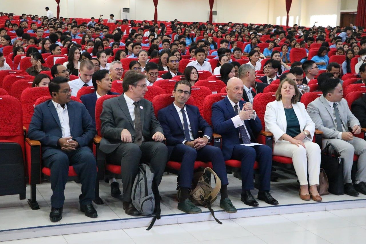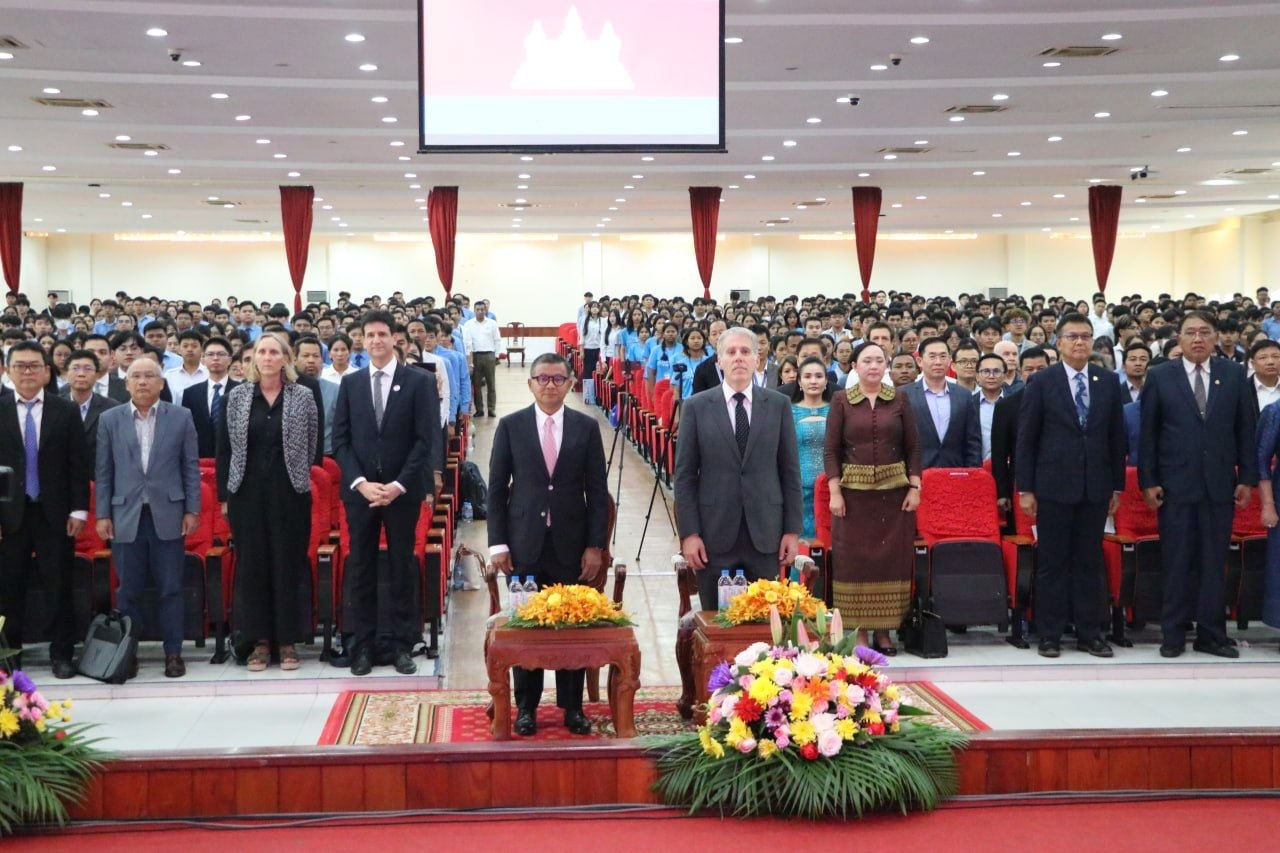 (ភ្នំពេញ)៖ លោកបណ្ឌិតសភាចារ្យ ហង់ជួន ណារ៉ុន ឧបនាយករដ្ឋមន្ត្រី រដ្ឋមន្ត្រីក្រសួងអប់រំ យុវជន និងកីឡា នារសៀលថ្ងៃទី២០ ខែមីនា ឆ្នាំ២០២៦នេះ បានអញ្ជើញជាអធិបតីក្នុងពិធីអបអរសាទរ ទិវាអន្តរជាតិហ្វ្រង់កូហ្វូនី ឆ្នាំ២០២៦ ក្រោមប្រធានបទ៖ ជំនាន់យុវជនសន្តិភាព? ការរួមចំណែករបស់យុវជន ដើម្បីធ្វើឱ្យពិភពលោកកាន់តែមានសុខសន្តិភាព (Génération paix? Contributions de la jeunesse pour un monde plus apaisé) និងមានការចូលរួមពីលោក Christian DESROCHES ឯកអគ្គរដ្ឋទូតកាណាដាប្រចាំកម្ពុជា តំណាងស្ថានទូតបារាំងប្រចាំនៅកម្ពុជា ភ្ញៀវជាតិ និងអន្តរជាតិ ថ្នាក់ដឹកនាំ ដៃគូអភិវឌ្ឍន៍ មន្ត្រីរាជការ គ្រូបង្រៀន និស្សិត និងសិស្សានុសិស្ស សរុបចំនួនប្រមាណជាង ១៥០០នាក់។