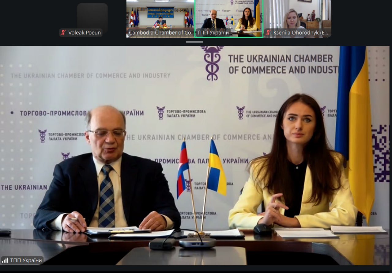 សភាពាណិជ្ជកម្មកម្ពុជា ចុះអនុស្សរណៈនៃការយោគយល់គ្នា ជាមួយសភាពាណិជ្ជកម្ម និងឧស្សាហកម្មអ៊ុយក្រែន ដើម្បីពង្រឹងចំណងសេដ្ឋកិច្ច និងពាណិជ្ជកម្ម