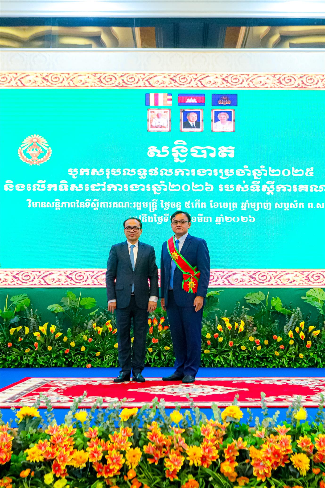 សូមជម្រាបជូនថា សន្និបាតបូកសរុបលទ្ធផលការងារប្រចាំឆ្នាំ២០២៥ និងលើកទិសដៅការងារឆ្នាំ២០២៦ របស់ទីស្តីការគណៈរដ្ឋមន្ត្រី បានប្រព្រឹត្តទៅរយៈពេលពេញមួយថ្ងៃ ដោយបានពិភាក្សាលើមូលបទចំនួន៤ ទី១. ការជំរុញប្រសិទ្ធភាពតាក់តែងច្បាប់និងលិខិត បទដ្ឋានគតិយុត្ត និងការ សម្របសម្រួលកិច្ចប្រជុំពាក់ព័ន្ធនៅទីស្ដីការគណៈរដ្ឋមន្រ្តី ទី២. ចំណាត់ការរបស់រាជរដ្ឋាភិបាល ចំពោះសង្រ្គាមកម្ពុជា-ថៃ និងវិធានការគាំទ្រសម្រាប់ជនរងគ្រោះ និងជនភៀសសឹក ទី៣. ការប្រារព្ធខួបទី១០០ឆ្នាំ នៃការបង្កើតបណ្ណសារដ្ឋានជាតិ នៃកម្ពុជា ផ្សារភ្ជាប់ជាមួយនឹងកិច្ចប្រជុំកំពូលហ្វ្រង់កូហ្វូនីលើកទី២០ និងផែនការយុទ្ធសាស្រ្តធ្វើទំនើបកម្ម បណ្ណសារជាតិសម្រាប់ រយៈពេល១៥ឆ្នាំ (២០២៦- ២០៤០) ទី៤. កម្មវិធី កែទម្រង់ការគ្រប់គ្រងហិរញ្ញវត្ថុសាធារណៈរបស់ទីស្ដីការគណៈរដ្ឋមន្រ្តី និងបានបង្ហាញនូវវឌ្ឍនភាព និងលទ្ធផលការងាររបស់អគ្គនាយកដ្ឋានទាំង១០ ព្រមទាំងក្រុមប្រឹក្សាអាជ្ញាធរគណៈកម្មាធិការ និងអង្គភាពផ្សេងទៀតក្រោមឱវាទទីស្ដីការគណៈរដ្ឋមន្ត្រី។