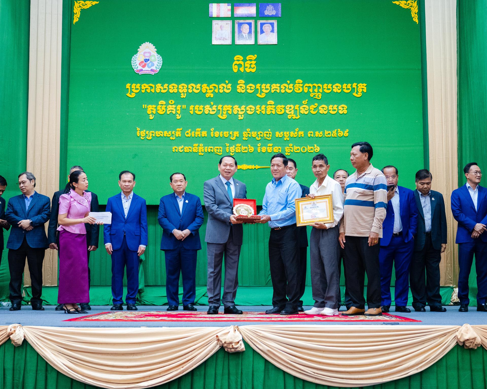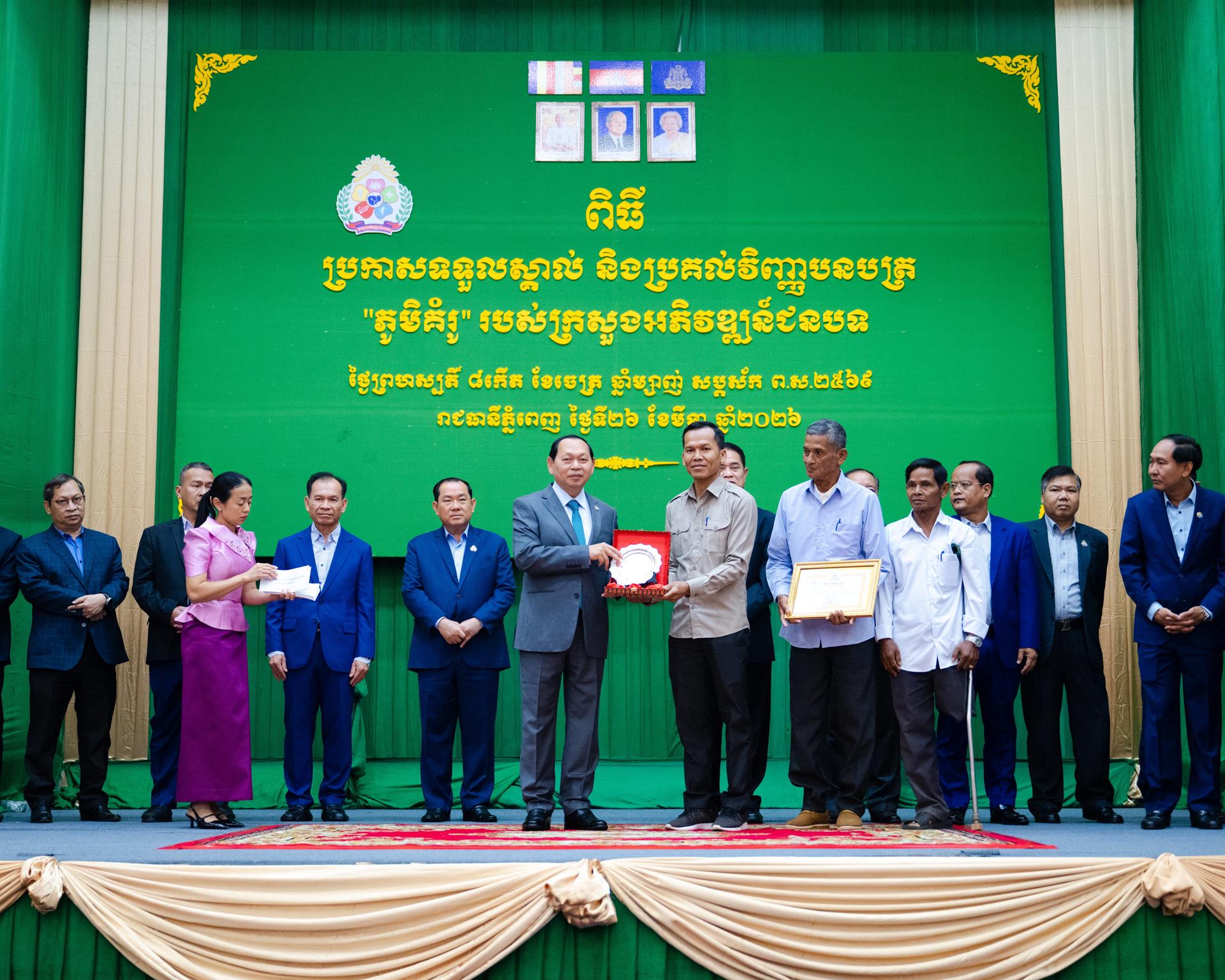 (ភ្នំពេញ)៖ លោក ឆាយ ឫទ្ធិសែន រដ្ឋមន្ត្រីក្រសួងអភិវឌ្ឍន៍ជនបទ នាព្រឹកថ្ងៃទី២៦ ខែមីនា ឆ្នាំ២០២៦ បានអញ្ជើញជាគណៈអធិបតីក្នុងពិធីប្រកាសទទួលស្គាល់ និងប្រគល់វិញ្ញាបនបត្រ «ភូមិគំរូ» សម្រាប់ក្រសួងអភិវឌ្ឍន៍ជនបទចំនួន ៥១ភូមិ សម្រាប់ឆ្នាំ២០២៥។ ពិធីប្រកាសនេះមានការចូលរួមដោយផ្ទាល់ពីសំណាក់ រដ្ឋលេខាធិការប្រចាំការ ថ្នាក់ដឹកនាំក្រសួង អភិបាលរងរាជធានី-ខេត្ត គណៈកម្មការវាយតម្លៃការអភិវឌ្ឍន៍ភូមិគំរូ ប្រធានមន្ទីរអភិវឌ្ឍន៍ជនបទ រាជធានី-ខេត្ត ទីភ្នាក់ងារសហប្រតិបត្តិការអន្ដរជាតិកូរ៉េ (KOICA) តំណាងដៃគូពាក់ព័ន្ធអាជ្ញាធរខេត្ត ក្រុមប្រឹក្សាឃុំ សង្កាត់ពាក់ព័ន្ធ ព្រមទាំងគណៈកម្មាធិការអភិវឌ្ឍន៍ភូមិគោលដៅទាំង ៥១ភូមិ។