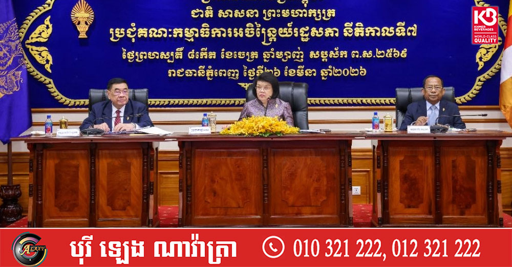 (ភ្នំពេញ)៖ សម្តេចមហារដ្ឋសភាធិការធិបតី ឃួន សុដារី ប្រធានរដ្ឋសភា នៅព្រឹកថ្ងៃទី២៦ ខែមីនា ឆ្នាំ២០២៦នេះ បានអញ្ជើញដឹកនាំកិច្ចប្រជុំគណៈកម្មាធិការអចិន្ត្រៃយ៍រដ្ឋសភា ដើម្បីពិភាក្សាអនុម័តលើរបៀបវារៈមួយចំនួន។