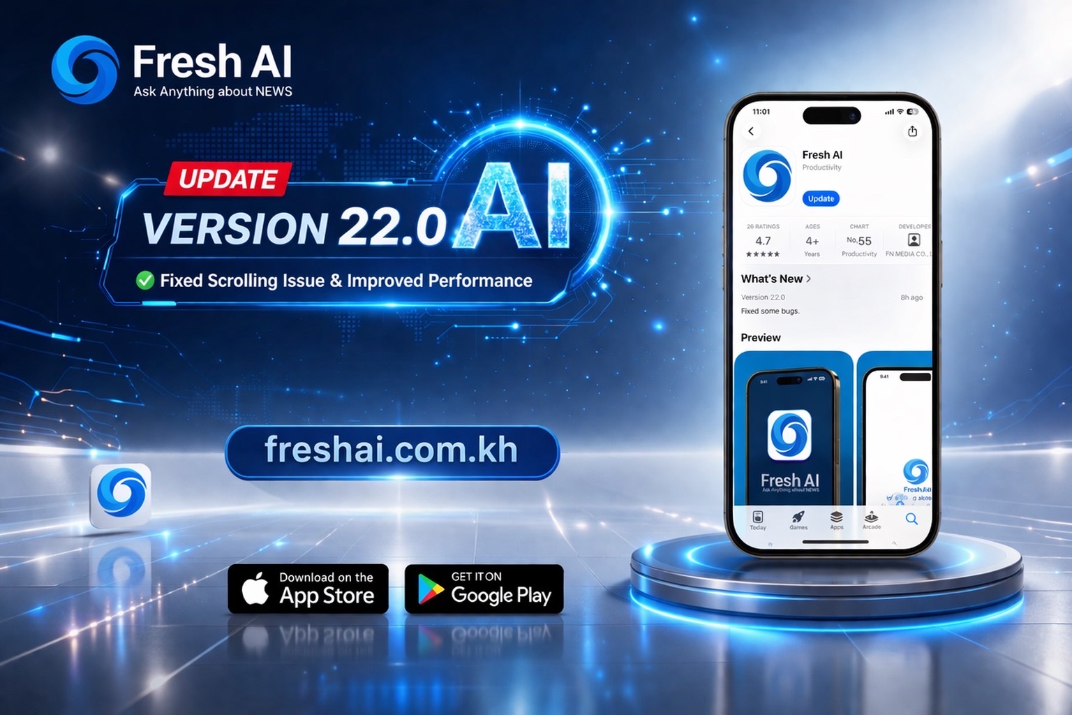 ការមកដល់នៃ Fresh AI Version 22 គឺជាជំហានថ្មីមួយទៀតក្នុងការលើកកម្ពស់បច្ចេកវិទ្យាឌីជីថលនៅកម្ពុជា។ វាបង្ហាញឱ្យឃើញថា Fresh AI មិនត្រឹមតែជាកម្មវិធីសម្រាប់សួរឆ្លើយធម្មតានោះទេ ប៉ុន្តែជាដៃគូដ៏វៃឆ្លាត All-in-One ដែលយល់ពីតម្រូវការរបស់អ្នកប្រើប្រាស់ខ្មែរច្បាស់ជាងគេ៕