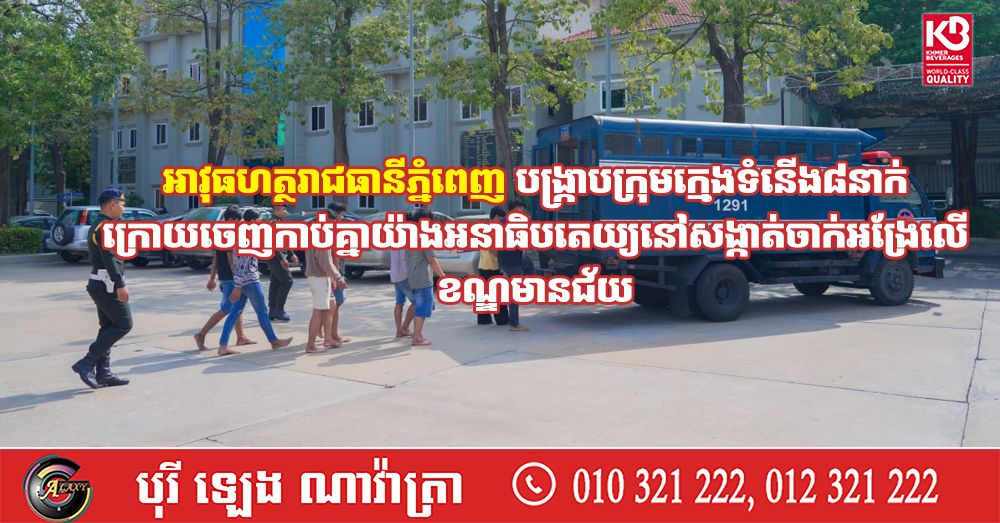 អាវុធហត្ថរាជធានីភ្នំពេញ បង្ក្រាបក្រុមក្មេងទំនើង៨នាក់ ក្រោយចេញកាប់គ្នាយ៉ាងអនាធិបតេយ្យនៅសង្កាត់ចាក់អង្រែលើ ខណ្ឌមានជ័យ