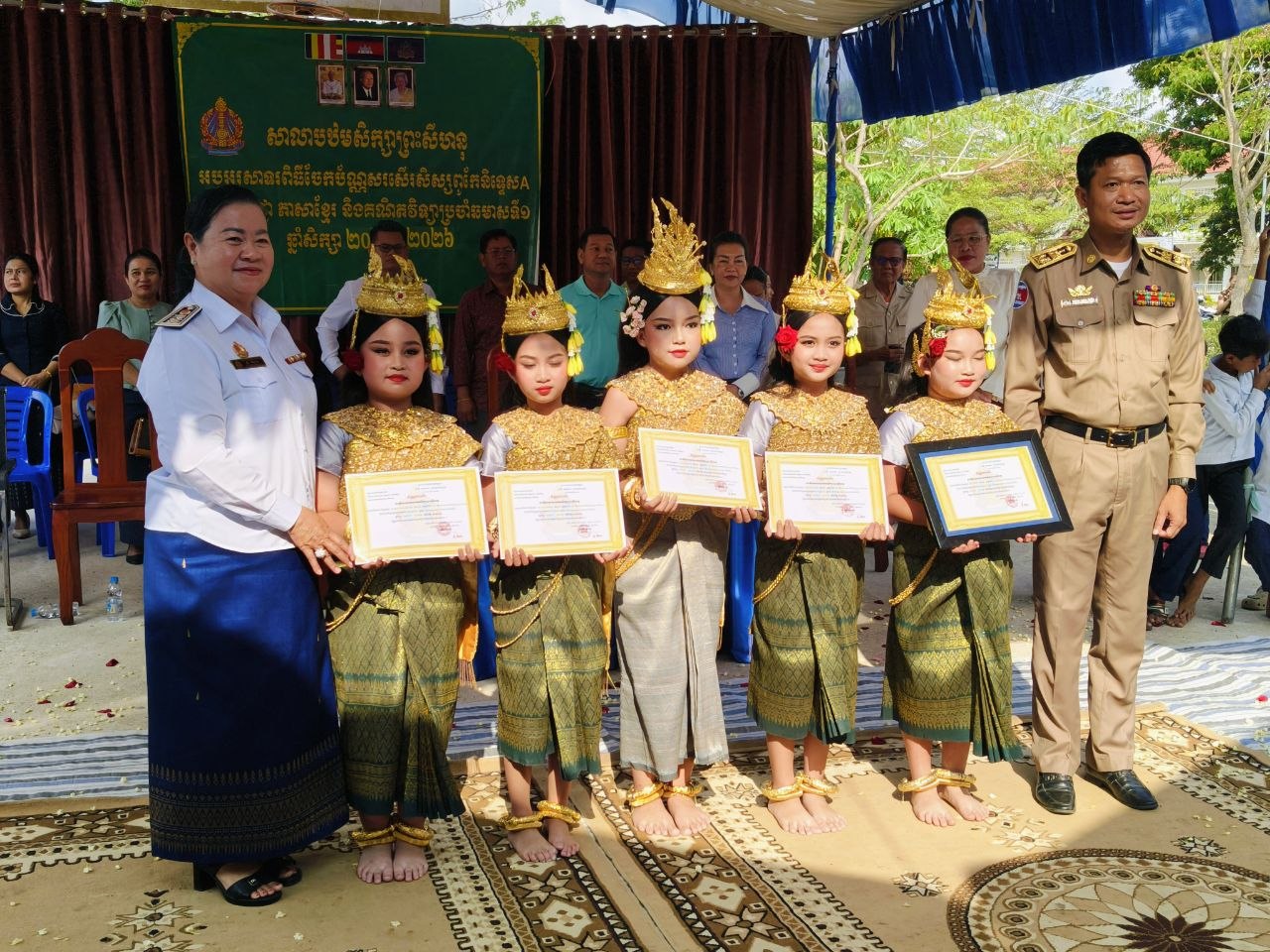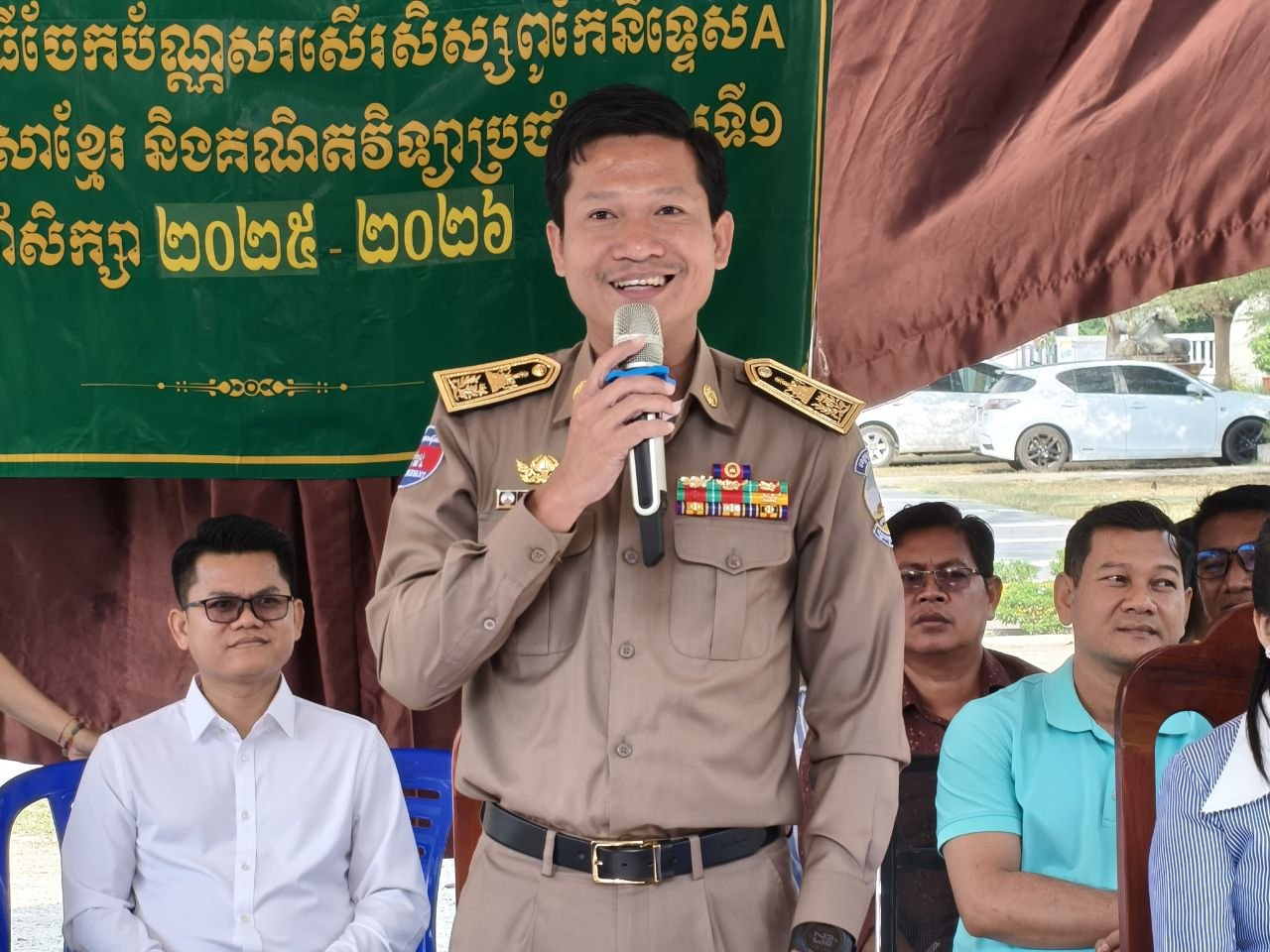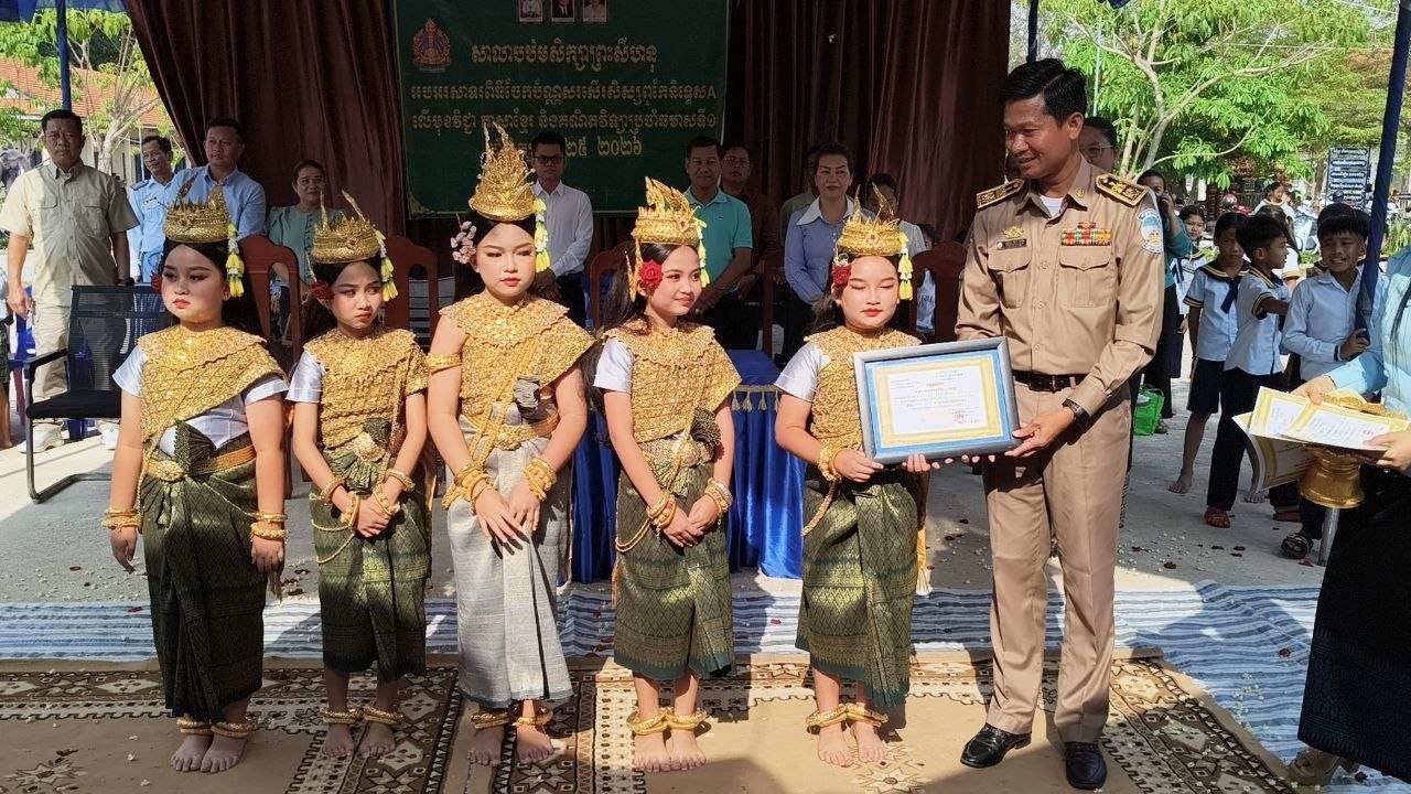 (ស្វាយរៀង)៖ លោក ណុប ចំរើន អភិបាលក្រុងស្វាយរៀង និងលោកស្រី គង់ បូទុម ប្រធានគណៈកម្មការទ្រទ្រង់សាលាបឋមសិក្សាព្រះសីហនុ នៅព្រឹកថ្ងៃទី២៧ ខែមីនា ឆ្នាំ២០២៦នេះ បានអញ្ជើញប្រគល់រង្វាន់ និងប័ណ្ណសរសើរដល់សិស្សទទួលបាននិទ្ទេស A ចំនួន៦៣៤នាក់ ក្នុងឆមាសលើកទី១ ឆ្នាំសិក្សា២០២៥-២០២៦ នៅសាលាបឋមសិក្សាព្រះសីហនុ ក្រុងស្វាយរៀង ខេត្តស្វាយរៀង។