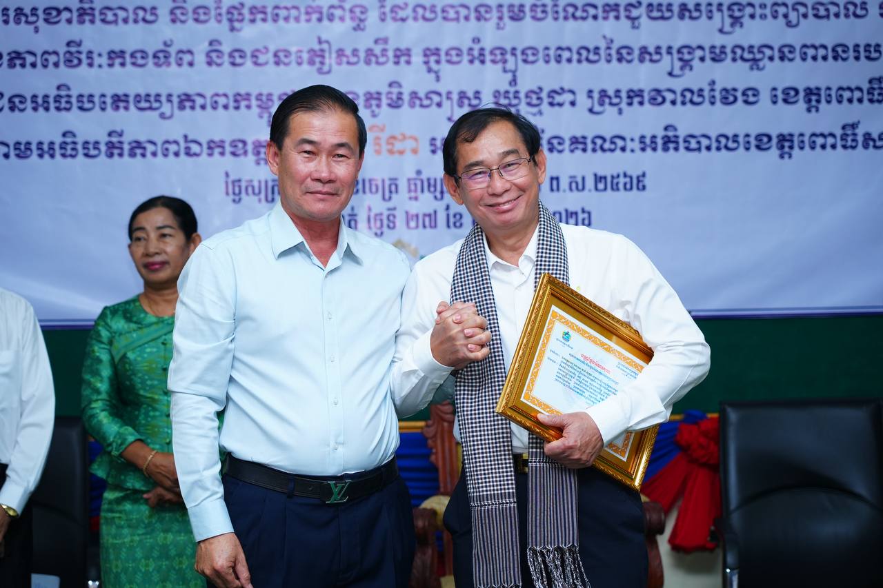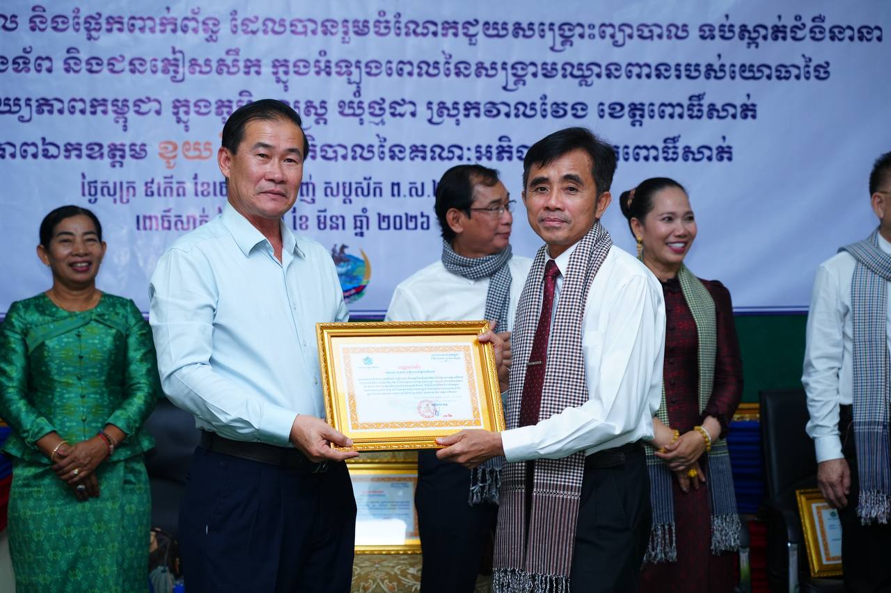 (ពោធិ៍សាត់)៖ ក្នុងស្មារតីលើកតម្កើងវីរភាព និងការលះបង់ដ៏ខ្ពង់ខ្ពស់ដើម្បីបុព្វហេតុជាតិមាតុភូមិ នាថ្ងៃទី២៧ ខែមីនា ឆ្នាំ២០២៦ រដ្ឋបាលខេត្តពោធិ៍សាត់ បានរៀបចំពិធីសំណេះសំណាល និងប្រគល់ប័ណ្ណថ្លែងអំណរគុណ យ៉ាងអធិកអធម ជូនដល់ក្រុមគ្រូពេទ្យស្ម័គ្រចិត្ត និងមន្ត្រីសុខាភិបាល (ទ័ពអាវស) ដែលបានបញ្ចប់បេសកកម្មមនុស្សធម៌ និងការសង្គ្រោះបន្ទាន់ នៅតំបន់សមរភូមិមុខ ឃុំថ្មដា ស្រុកវាលវែង ក្នុងអំឡុងពេលនៃវិវាទព្រំដែនកន្លងទៅ។