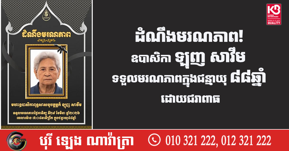 ដំណឹងមរណភាព! ឧបាសិកា ឡុញ សាវឹម ទទួលមរណភាពក្នុងជន្មាយុ ៨៨ឆ្នាំ ដោយជរាពាធ