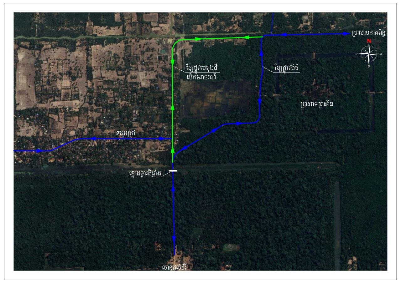 ១៖ ផ្លូវបេតុងពីខាងមុខខ្លោងទ្វារដីឆ្នាំង ទៅជ្រុងខាងជើងឆៀងខាងលិចនៃប្រាសាទព្រះខ័ន ប្រវែង ២,១៨០ ម៉ែត្រ ស្ថិតនៅភូមិនគរក្រៅ សង្កាត់គោកចក ក្រុងសៀមរាប