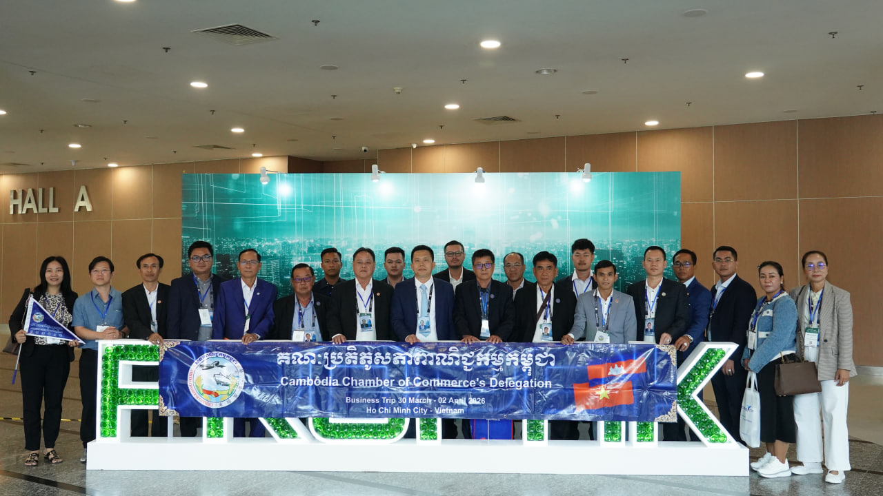 (ហូជីមិញ)៖ ដោយទទួលបានអនុញ្ញាតពីអ្នកឧកញ៉ា គិត ម៉េង ប្រធានសភាពាណិជ្ជកម្មកម្ពុជា និងជាប្រធានក្រុមប្រឹក្សាពិគ្រោះយោបល់ធុរកិច្ចអាស៊ាន សម្រាប់កម្ពុជា, លោក ឡេង សុខគា អនុប្រធានសភាពាណិជ្ជកម្មកម្ពុជា និងជាប្រធានសភាពាណិជ្ជកម្មខេត្តកំពង់ស្ពឺ បានដឹកនាំគណៈប្រតិភូចំនួន ៣៦រូប ដោយមានការចូលរួមពី ឧកញ៉ា ហេង សំណាង អនុប្រធានសភាពាណិជ្ជកម្មកម្ពុជា និងជាប្រធានសភាពាណិជ្ជកម្មខេត្តកំពង់ធំ-ព្រះវិហារ តំណាងសភាពាណិជ្ជកម្មខេត្តព្រះសីហនុ តំណាងសភាពាណិជ្ជកម្មខេត្តកំពង់ចាម តំណាងសភាពាណិជ្ជកម្មខេត្តសៀមរាប-ឧត្តរមានជ័យ និងតំណាងសភាពាណិជ្ជកម្មរាជធានីភ្នំពេញ ចូលរួមក្នុងពិព័រណ៍អន្តរជាតិ ស្ដីពីបច្ចេកវិទ្យាកែច្នៃ និងវេចខ្ចប់ (PROPAK VIETNAM 2026) នាមជ្ឈមណ្ឌលពិព័រណ៍មជ្ឈមណ្ឌលពិព័រណ៍ និងសន្និបាតសៃហ្គន ក្នុងទីក្រុងហូជីមិញ។