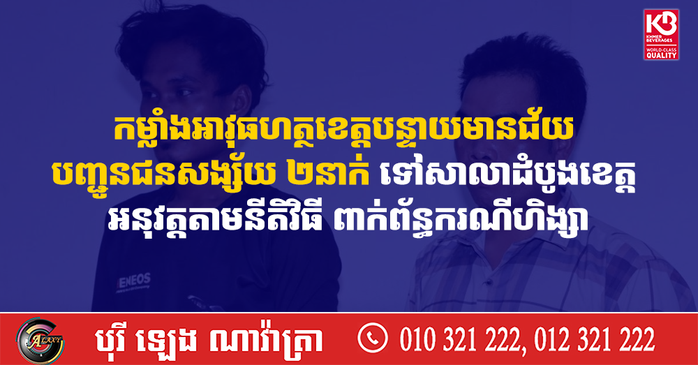 កម្លាំងឣាវុធហត្ថខេត្តបន្ទាយមានជ័យ បញ្ជូនជនសង្ស័យ ២នាក់ ទៅសាលាដំបូងខេត្ត ឣនុវត្តតាមនីតិវិធី ពាក់ព័ន្ធករណីហិង្សា